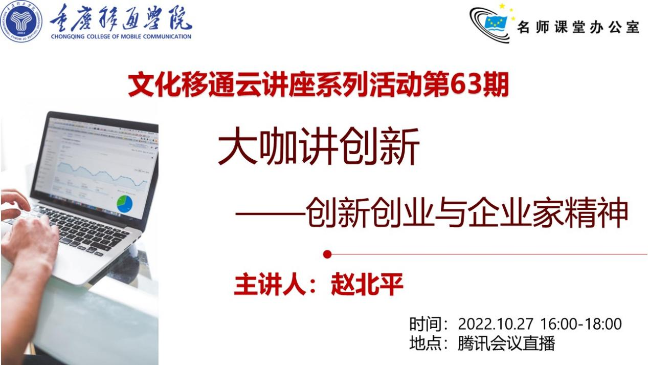 随着社会的快速发展,社会对人才的培养也提出了新的要求,创新成为当代人才的一个重要特征。那么如何创新?又如何从创新到创业?在创业成功的过程中起作用的又是什么企业家精神?10月27日下午4点,文化移通线上研讨课带来了赵北平教授的精彩讲座,为同学们讲述了正确的创业价值观,探讨了创新与创业的关系,让大家更好地了解什么是企业家和企业家精神。