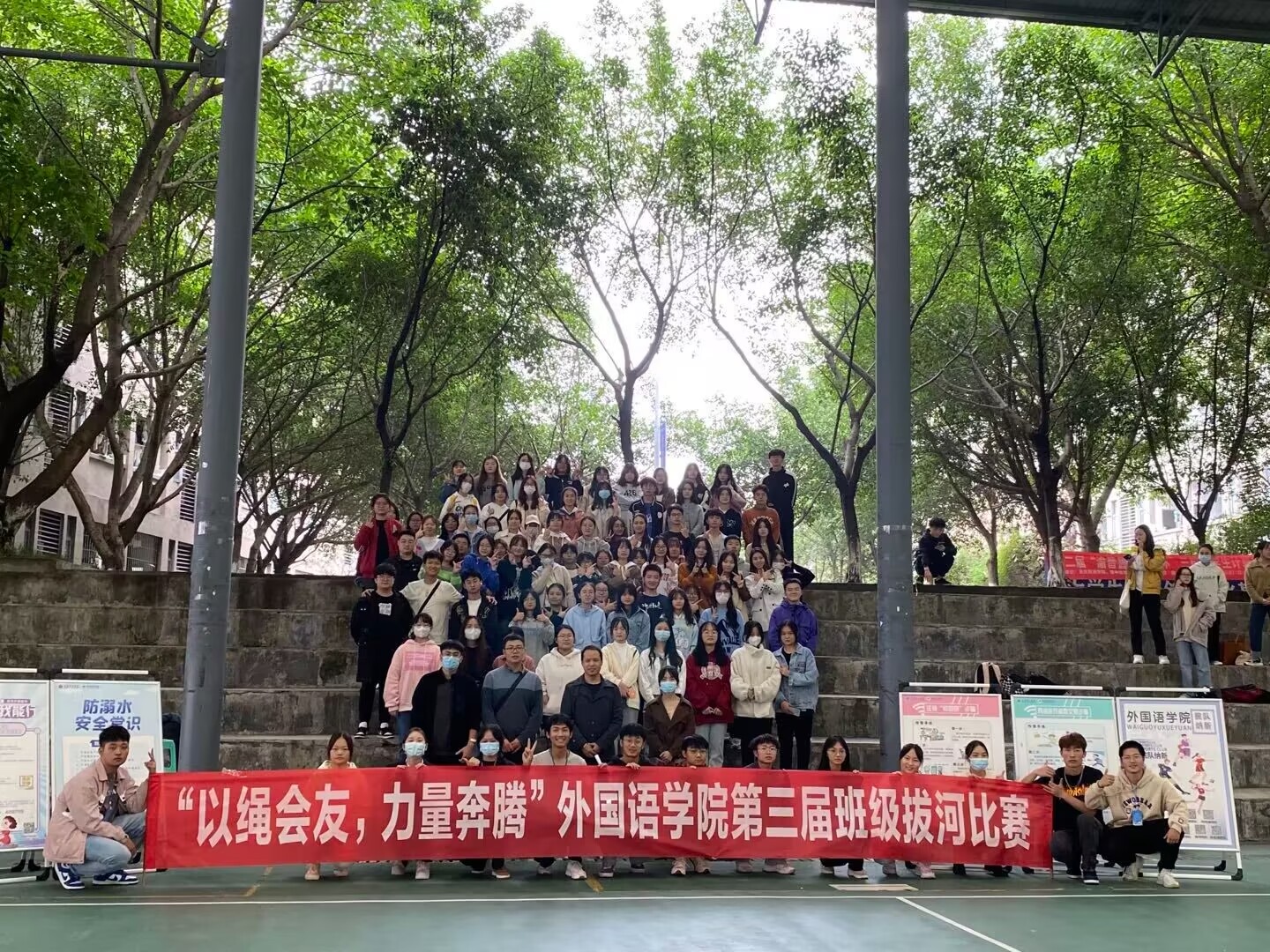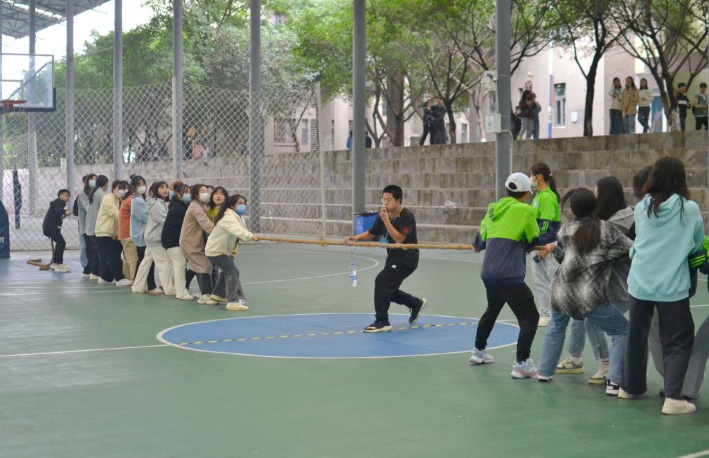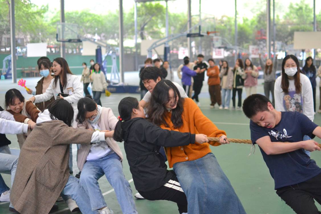初秋的微风吹走了夏日的炎热,但迎来了外国语学院“以绳会友,力量奔腾”第三届班级拔河比赛。此次,很荣幸邀请了外国语学院副院长祝玮老师、外国语学院竞技体育板块指导老师阳果老师、大一新生辅导员于彩仙老师、杨茂林老师莅临现场。本次活动以班级为单位,共有24支队伍参加。