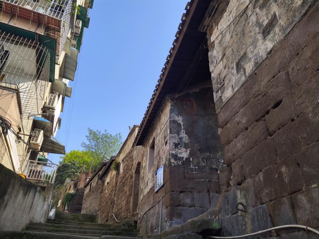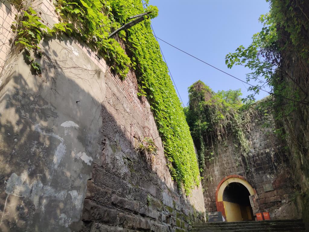 民生公司电灯部旧址向上行数十米,屹立着饱经风霜的瑞映门及明清旧城墙。合川历史悠久,有着2300多年的建制史,早在唐朝时期就已建城,唐宋时多次倾圮于水患。现存城门城墙始建于天顺七年,明清两代多次修补,有望江、会江、迎晖、洛阳、观德、演武等12座城门。瑞应门(今作瑞映门)位于城北,是其中之一,城门呈拱形,宽约3米,高约5米,城墙由一块块粗壮均匀的石头砌成,难以想象在科技不发达的古代,他们是怎样将一块块沉重的石头垒砌起来的。瑞应门外有纯阳山,内有合州城,站在纯阳山远眺,清风习习、景色怡人,这便是著名的“瑞应清风”,明清时期被列为“合州八景”之一。随着时代的变迁,纯阳山上早已建立起密密麻麻的房屋,“瑞应清风”的美景早已不在。