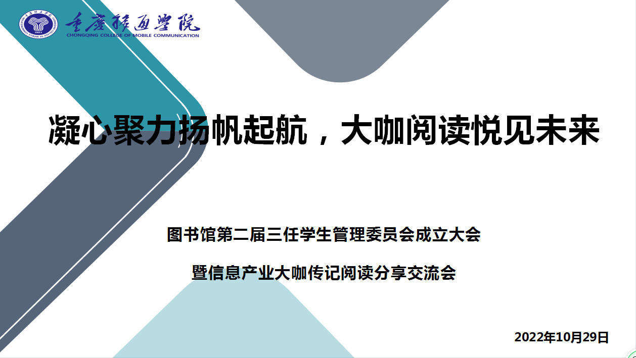 为更好地凝聚团队力量,围绕“数字经济时代的创新型产业商学院”总体办学定位,坚持以学生全面发展为中心,深入推进“四位一体双院制”人才培养模式,响应学校全员“信息产业大咖传记阅读计划”。10月28日上午10时,我校图书馆12楼活动室召开图书馆第二届第三任学生管理委员会成立大会暨信息产业大咖传记阅读分享交流会。参加会议的有学校图书馆馆长秦代辉,图管会指导老师吕淑艳老师、陈雪佳老师、孙玉娟老师、黄启容老师、余届娟老师、陈宣彤老师、汪静思老师、特邀嘉宾北山书院冯元老师,及第二届第三任图管会全体干部干事。本次会议由孔宣、何思宇主持。