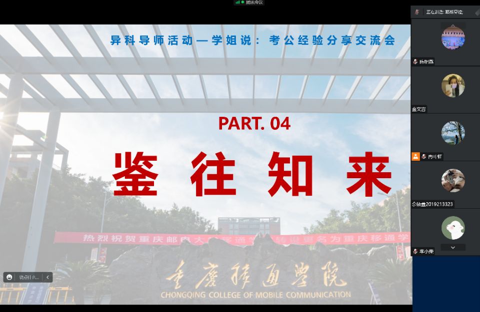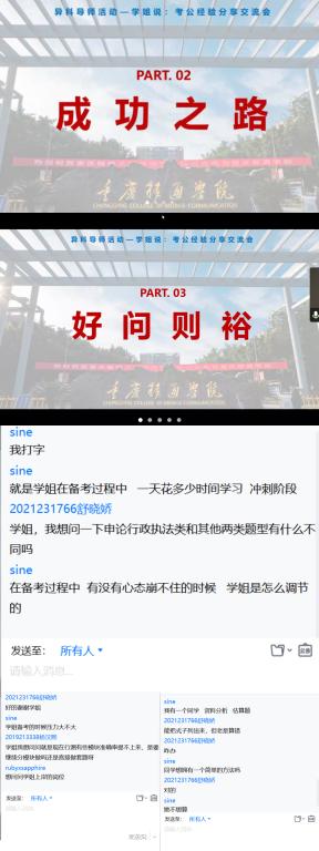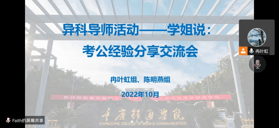 在严峻的就业环境下,全面推进就业工作已经迫在眉睫。2021级专升本学生已经迎来就业季,为让学生正确理性看待就业、择业,异科导师冉叶虹和陈明燕开启了系列活动:学长、学姐有话说——考公、考研、求职面试等的经验分享,让应届毕业生们寻找到最适合自己的路径,并为此做好充分准备。于是在10月29日邀请了2018级资产评估专业毕业生王舒霓作为分享人,借助“腾讯会议”为2021级工商管理专业专升本的学生们,进行了考公的经验分享。