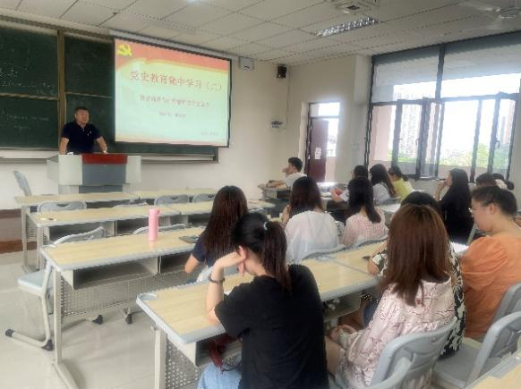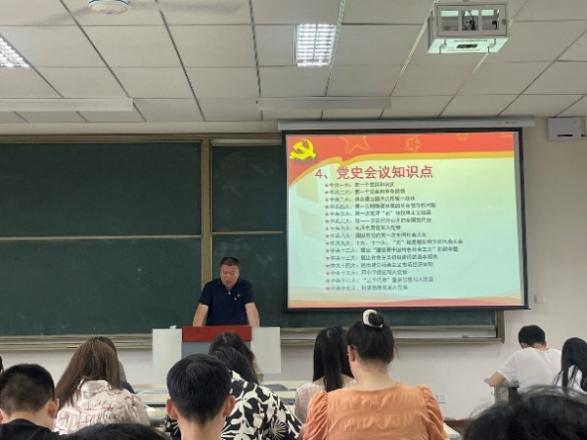 大会在潘显兵院长的带领下分4个板块进行学习,分别是党史阶段、党史人物、党史会议、党的建设。