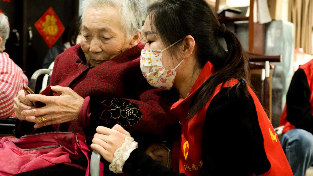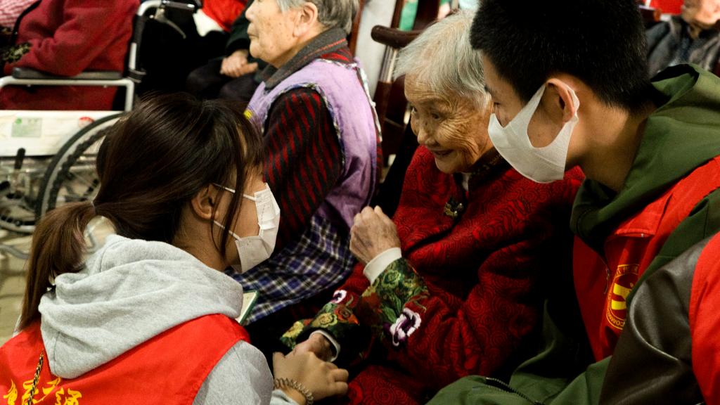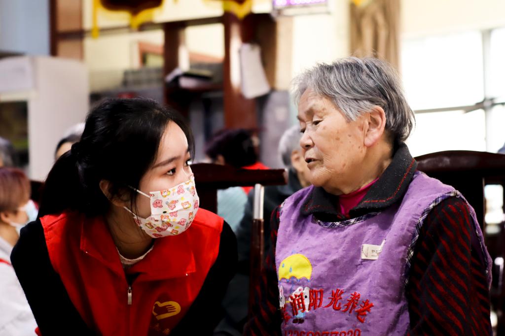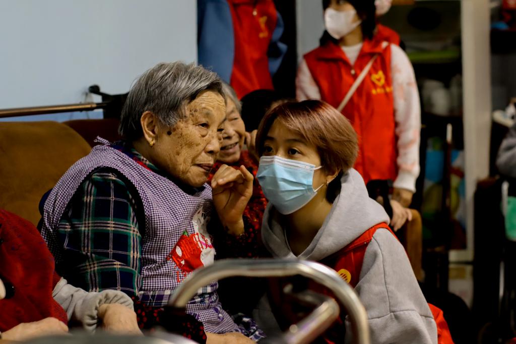 志愿者们以谦和亲切的语气与老人们交流,听老人讲述着过去的故事,随后帮助他们做一些力所能及的事。天气日渐变凉,志愿者们提醒老人们要多穿些衣服,注意保暖。
