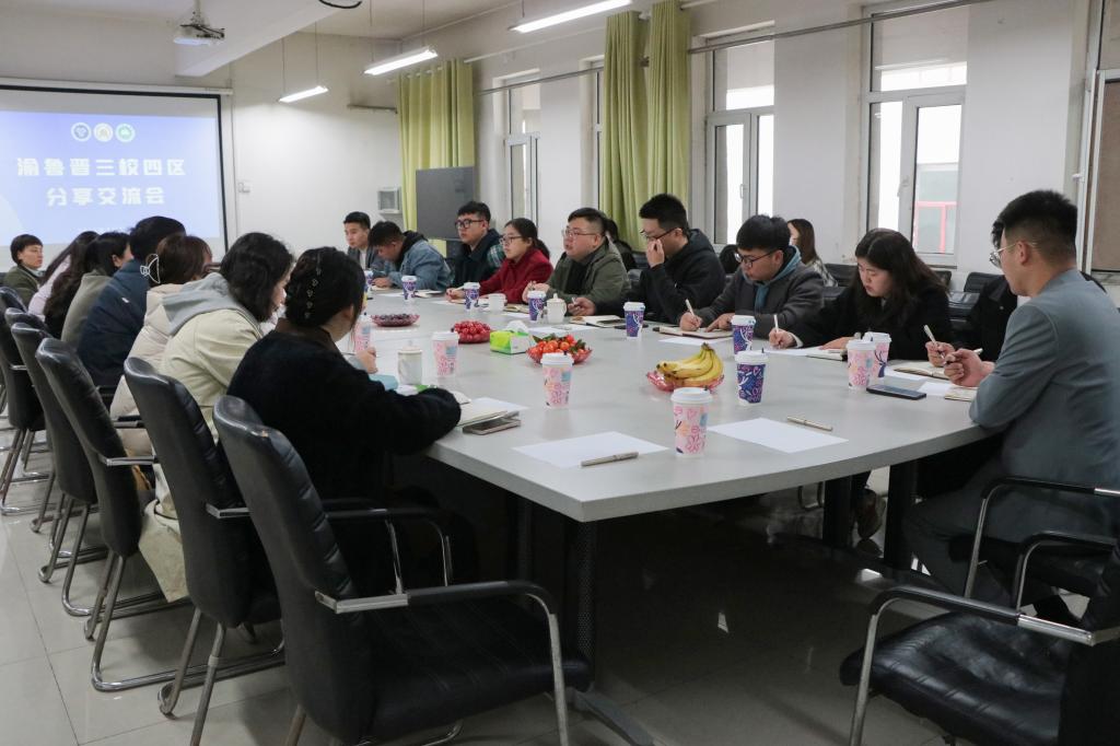 在老师交流会上,晋中信息学院团委牛瑞凤老师介绍了晋中信息学院团委的总体情况和工作思路,分享了其宝贵经验和先进做法。三校教师代表重点围绕学生全面发展培养、校园宣传建设与管理、校园文化建设、学生阵地管理等内容展开了交流学习,对三校团学工作的体系构架、日常工作模式、学生组织建设等方面进行了深入探讨。我校团委余明思老师结合宣传平台日常播报、管理、建设等方面进行了分享和交流。面对三校四区提出的一些共性的问题,晋中信息学院团委王德照老师谈到,打铁还需自身硬,强化内生动力,发展自身特色才是王道。