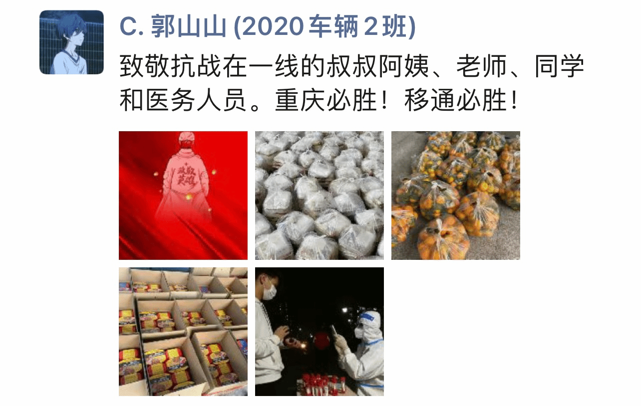 疫情,抵挡不住温情;同心,定能战胜疫情。保障同学们的一日三餐,关照同学们的日常生活,按部就班进行线上学习,这背后是无数人的努力付出!是的,我们可爱的老师们,与大家同在!和我们一起打这场,具有移通温度的战“疫”!