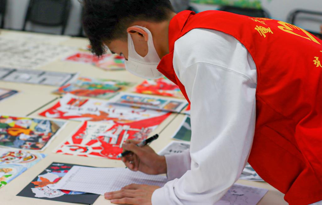 每一位参赛选手都将青春执于笔下,用色彩与奇思妙想的设计构图,运用剪纸、书法、绘画、海报等形式创作将自己心中那一份时代蓝图展现出来,用爱浇灌每一份作品。