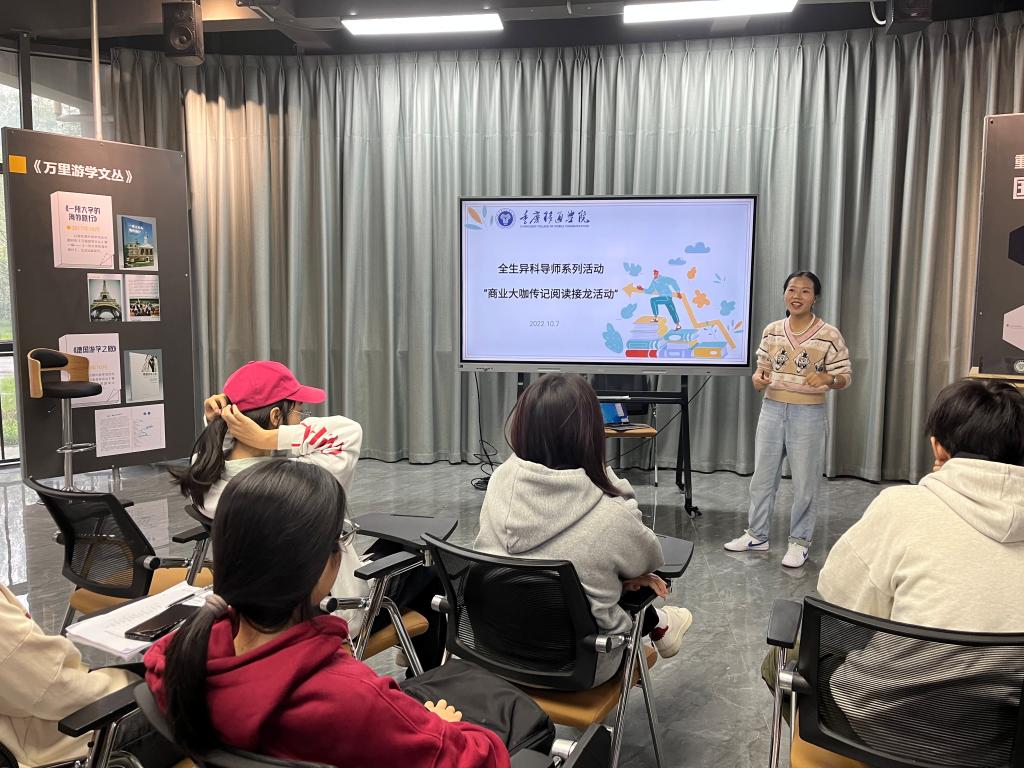 本次阅读活动,以接龙的方式进行。张老师首先介绍了本次阅读会的初衷及基本流程。张老师提醒同学们,以商业大咖传记阅读活动为纽带,同学们可以更好思考自己的发展,自己的未来,然后方向更明确地去实践,这才是大咖活动最好的意义。