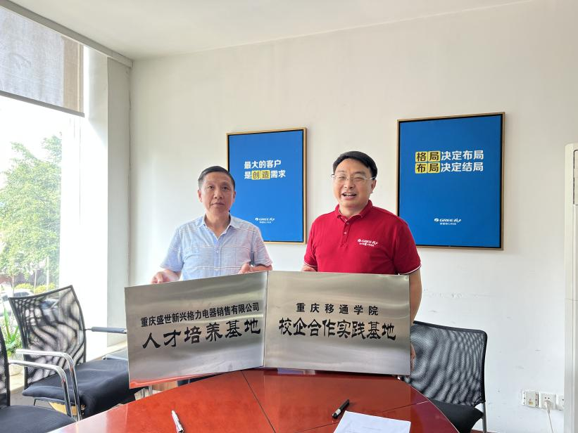 6月14日下午,校长助理刘枚一行人来到重庆盛世新兴格力电器销售有限公司交流并达成校企合作协议。座谈交流中,销售总监周强介绍了公司运营情况,同时,他也根据自身经历鼓励毕业生多到基层就业,不怕苦不怕累,学会抓住机遇。