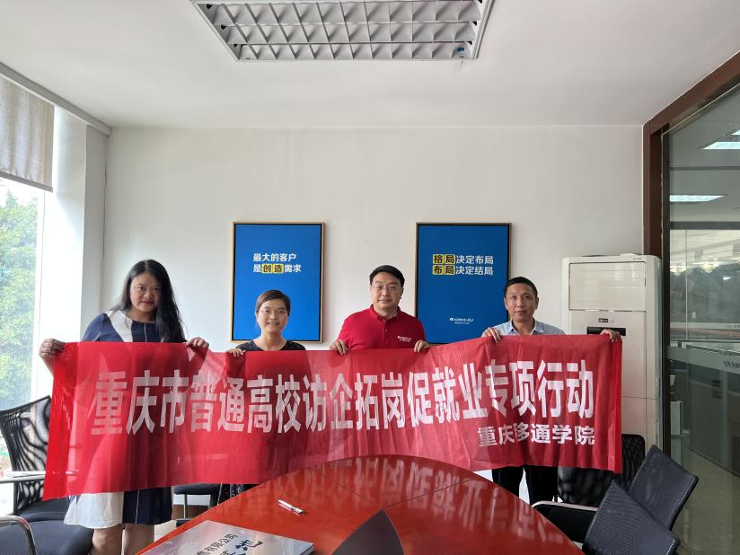 6月13日上午,在校长助理刘枚带领下,外国语学院院长吴世银、专门用途教研室主任李静、骨干教师代表朱陶和辅导员刘婉仪组成的访企拓岗小组,走访了重庆璀斑帛商贸有限公司,达成校企合作并举行签约仪式。