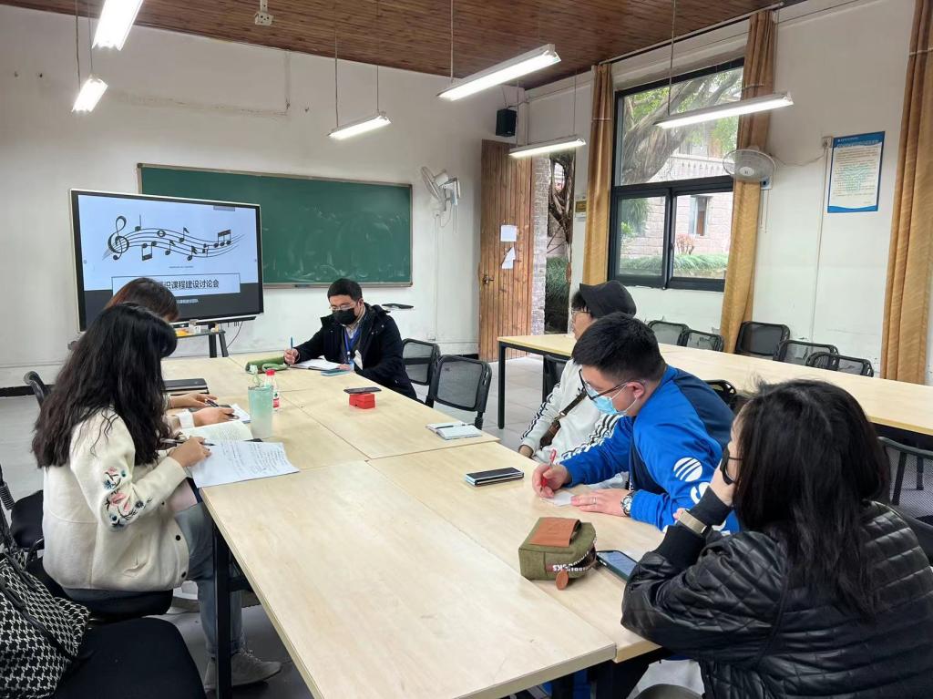 有了新的设想与要点设计,研讨会中老师们在现有课程建设基础上一方面进行交叉学科的设计:音乐与文学相结合,分段播放相应作品章节配以相应文字进行讲述或者朗读,能够更好的帮助学生理解音乐本身;音乐与电影相结合,在音乐作品中穿插故事情节,同样能让学生对于音乐所表达的内容理解更加深入。另一方面融入课程思政,邓老师建议通过对比中西方同一时期的音乐来实现。单旭燕老师表示,在听了音乐课后对自己所教授的历史课也有了新的思路与反思,对于新的社会热点以及内容可以及时更新到课堂教学中。音乐不只是音乐,它是欧洲社会的动态呈现,是文学与社会学的延展与交叉。陈老师也建议各位音乐老师能够多了解欧洲文化,以进一步打开课程建设的新思路,在教学中强化人文历史背景的熏陶。