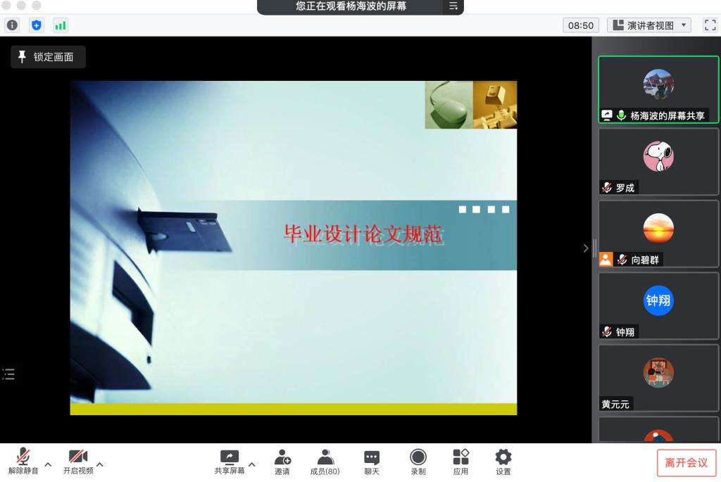 会议伊始,杨海波教授对移通学院关于做好2022届毕业设计(论文)工作的通知进行了详细的介绍,强调教师要严格按照学校要求,努力培养学生养成严谨的写作态度;接下来,他就优秀毕业论文的评选要求和流程做了几点说明,着重讲述了优秀毕业论文的选题必须要有一定的创新性,不能千篇一律;最后杨海波教授对毕业设计中学生选题最多的软件开发类为例,简单介绍了该类论文应有的结构,并对论文中的每一章的具体写作进行了详细的说明。