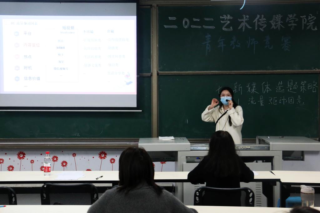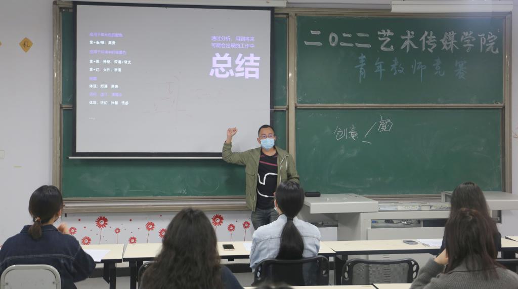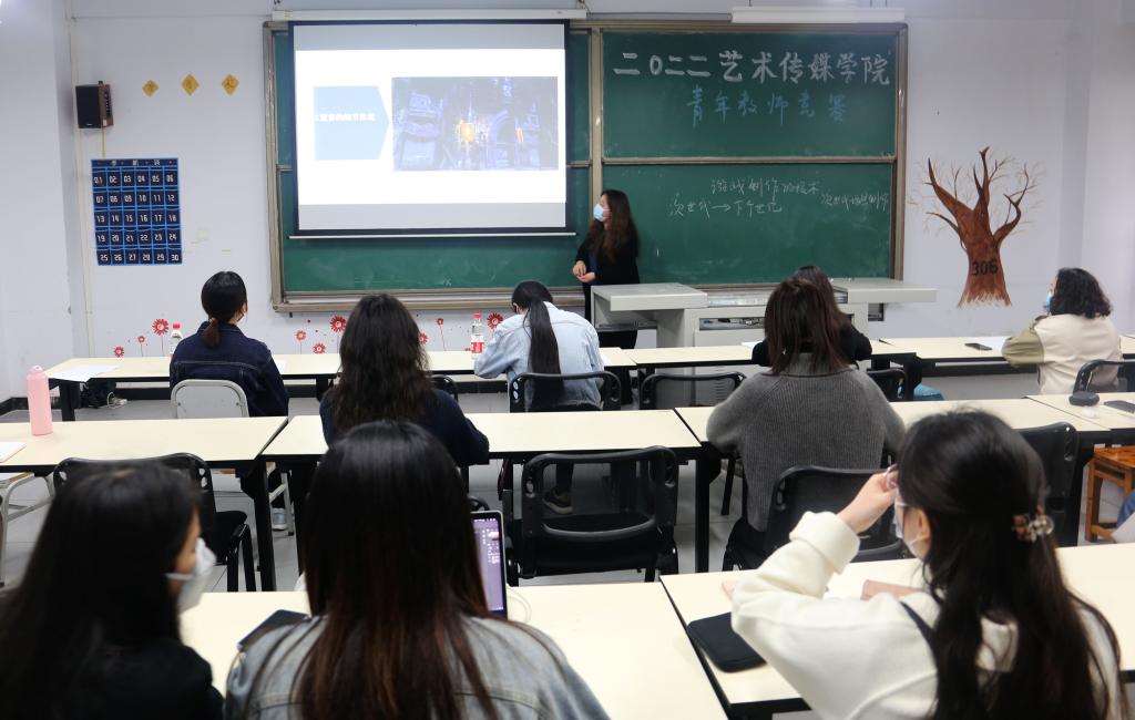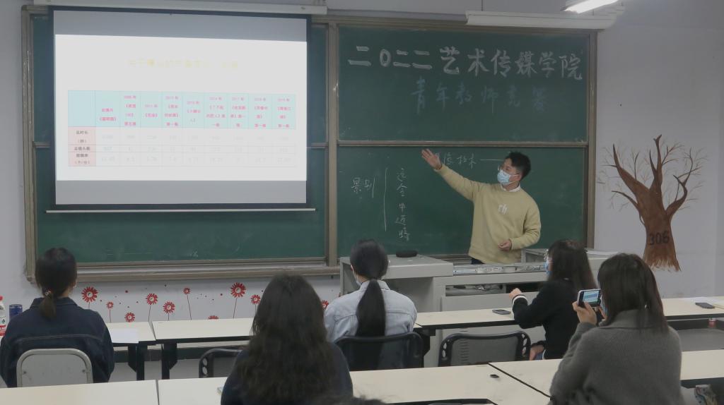 提高课堂教学质量是实现高等教育内涵式发展的必然要求。为进一步提升青年教师的教学水平和业务能力,搭建青年教师相互学习和交流的平台,全面提升学校的教学质量,3月30日下午,艺术传媒学院于艺术楼306教室开展“青年教师授课竞赛”,本次参加比赛的教师有闫公博、梅宁、余金凤、郭红利、刘亭宇、王婵和申梦鸽七位青年教师,评委组由艺术传媒学院院长李轶天、副院长张梅、教研室主任袁梦茹和李如冰、专业负责人胡巾煌共同组成,艺术传媒学院教师代表参与。