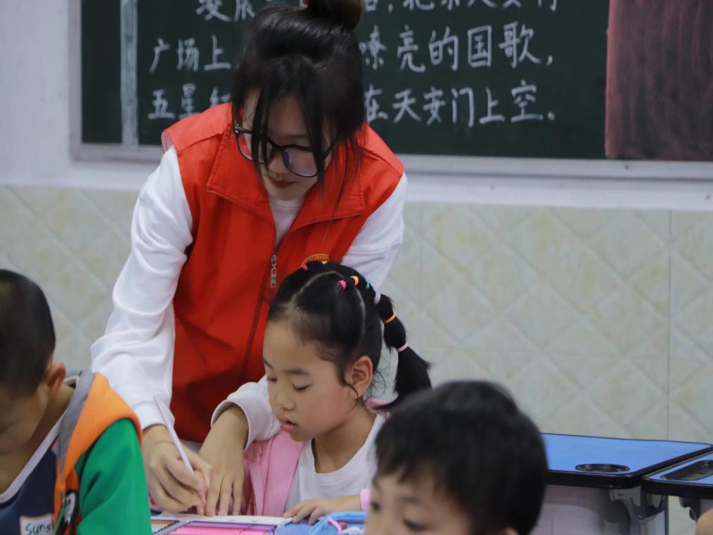 教室内,志愿者们满足小朋友的需求,开展兴趣活动,志愿者会告诉小朋友下棋方法与下棋规则,小朋友学习后会回家教自己的父母。可谓是形成了很好的“反哺”。操场上,小朋友与志愿者老师一起运动,活动筋骨,每一刻都在释放身心,志愿者们也仿佛回到了小时候,感受到了童年的快乐时光。