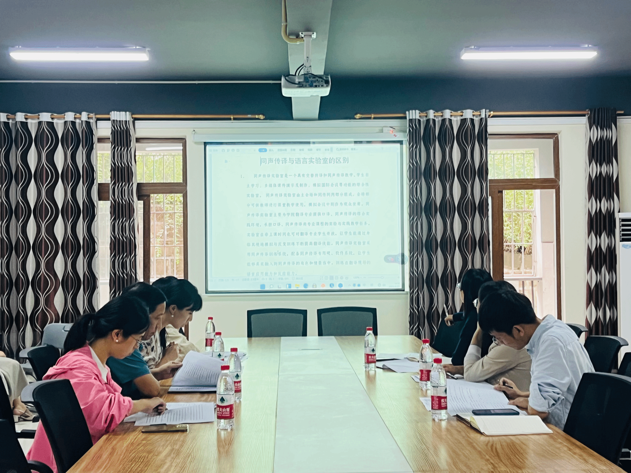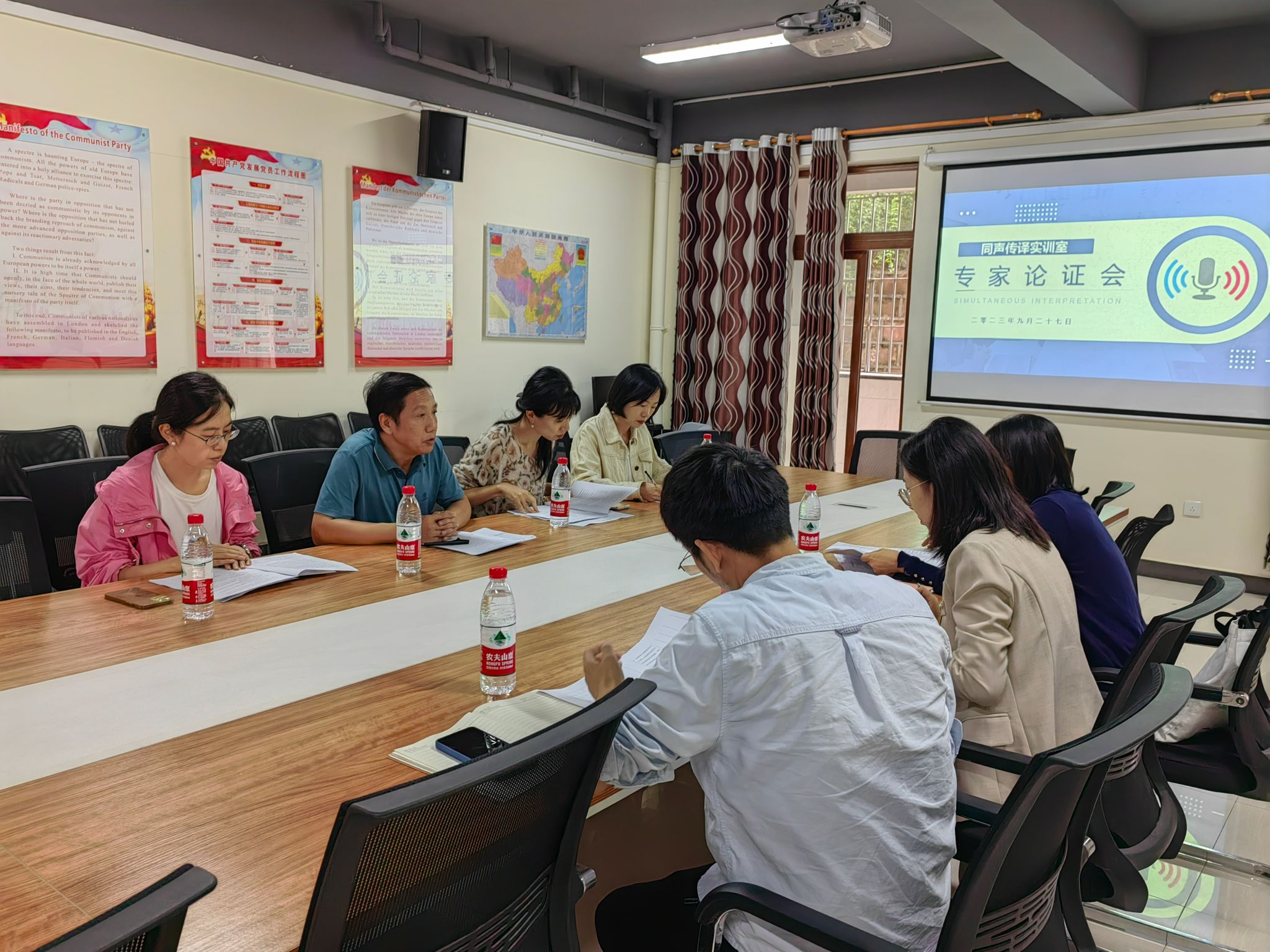 为提升外国语学院专业教学环境,丰富实训教学内容,以及推动我院课程建设和专业发展,9月27日下午两点,外国语学院在荷悦112会议室召开同声传译实训室专家论证会。会议邀请实训中心主任李立、网络与信息管理中心主任张炼、校外专家朱斌谊参与论证,外国语学院副院长罗琳、英语专业教研室主任卢镜囡、德语专业教研室主任熊光源出席此次会议。会议由外国语学院院长吴世银主持。