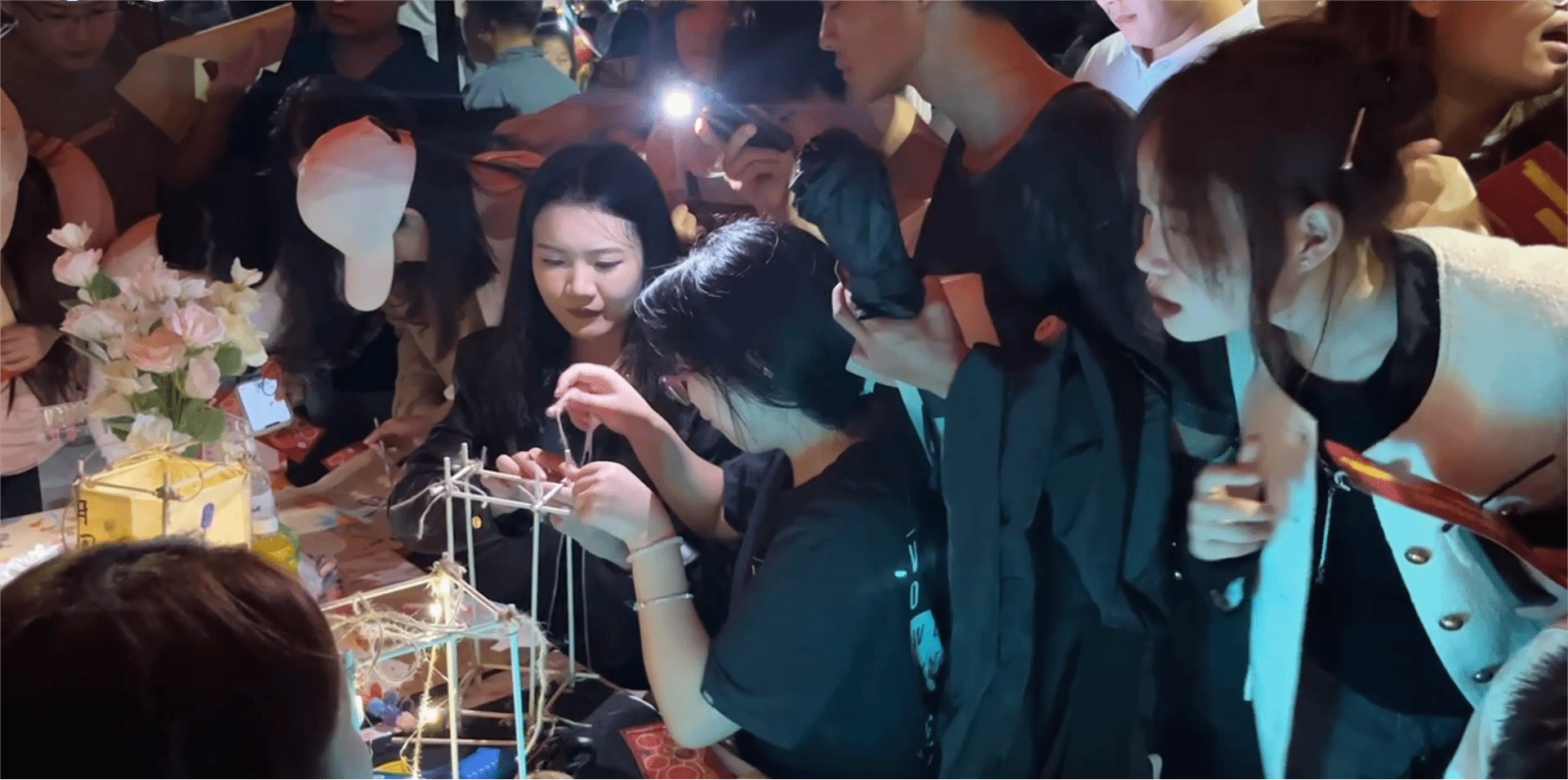 爱莲书院送上花灯、琉璃杯,让同学们用巧手描绘心中独一无二的中秋置景;别都和天空把“博饼”摆上长桌,营造福建非遗的独特体验;汇江“第五届创意花灯节设计展”如期拉开帷幕,伴随古筝演奏,现场浓烈的节日氛围持续高涨;廊桥书院带着寿星们一同体验“月饼烘焙”,品味专属中秋的醇厚甜香;南湖书院将灯谜挂在摊位各个角落,让同学们在苦思冥想间感受到运气和灵感迸发瞬间的兴奋与欣喜;鱼城书院设置“盲选好友”环节,留下联系方式开启下一段充满期预的邂逅。