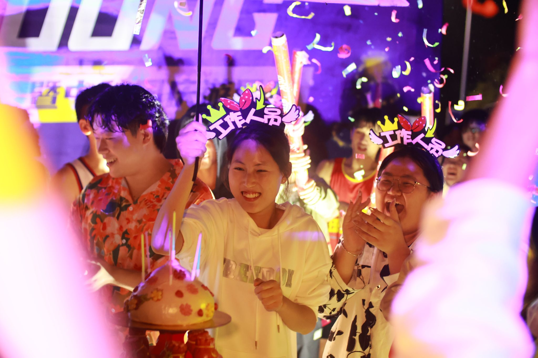 伴随着生日会推进,中式生日蛋糕缓缓推出,所有寿星围聚一起,在蜡烛点燃的瞬间,不约而同的唱起了生日歌,并且一同切下生日蛋糕。此刻每一位寿星的愿望都被行者公园的夜空收集,带着书院家的温暖,会变得更加熠熠生辉。