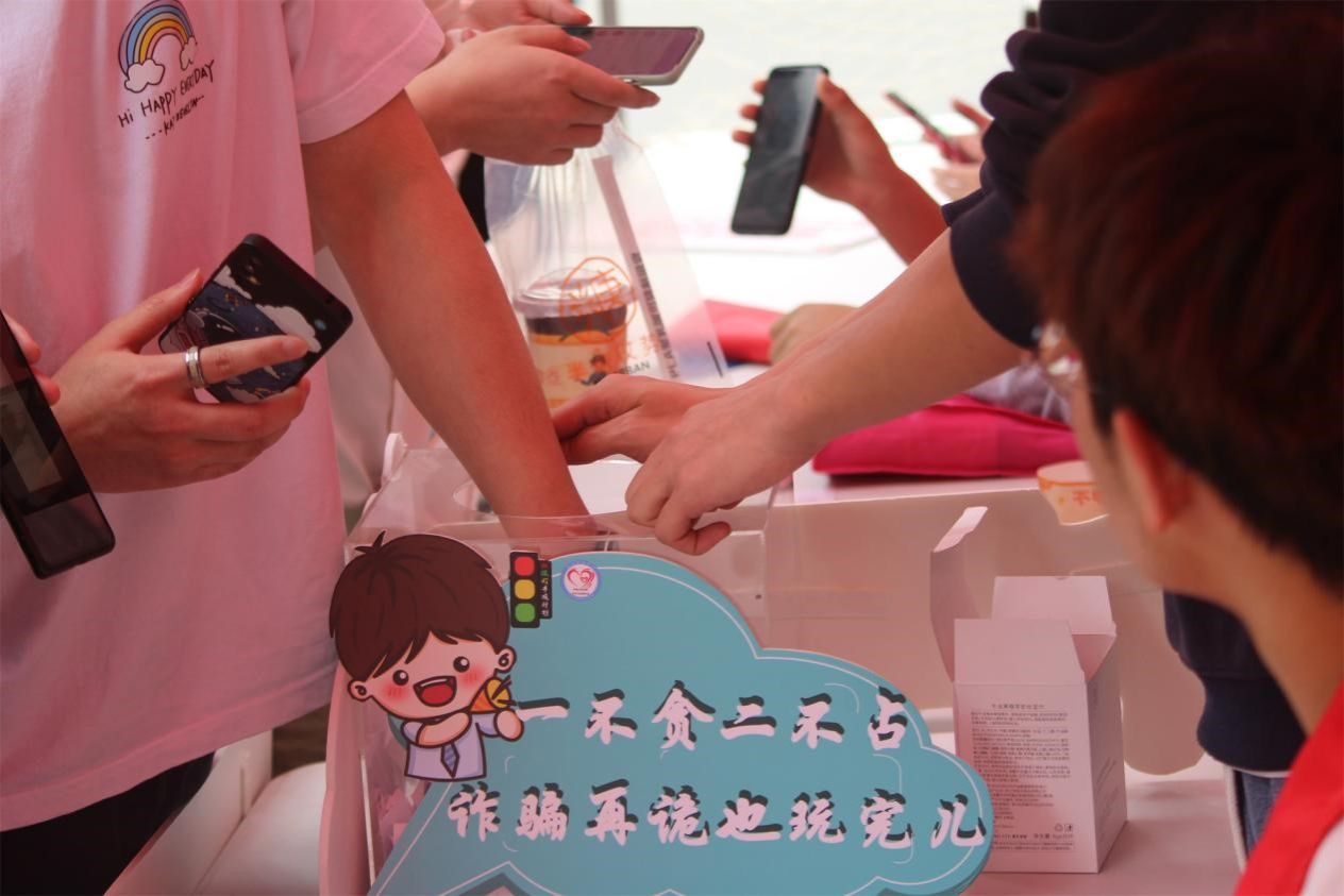 为进一步提高同学们反诈防骗意识,进一步维护同学们的切身利益,增强同学们遇到诈骗现象灵活应对的防范能力。4月26日,由智能工程学院、基建后勤处、学生处、保卫处主办,智能工程学院青年志愿者协会、学生会权益部以及2022级自动化类03团支部承办的“奶茶主打真诚”全民反诈特色宣传活动,面向全校同学在北苑食堂、三江食堂、文峰食堂五个饮品档口顺利开展,共计1500余名同学报名。