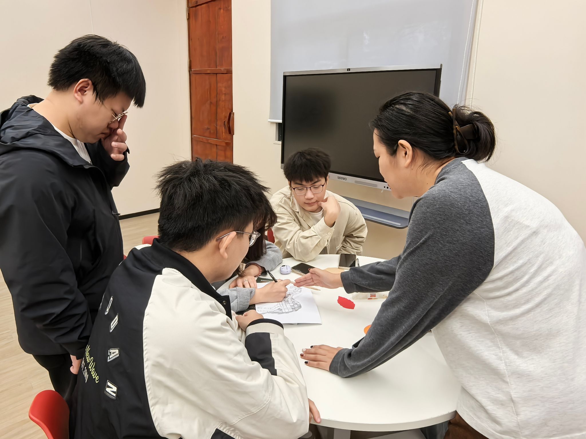 随后,三位老师与同学们共同参与了探索绘画中数学思维的设计实践,同学们在设计中巧妙融入数学原理,亲身体验了科学与艺术融合的新奇感受。