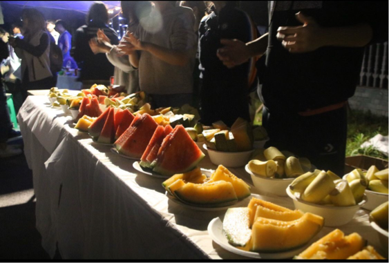 天空逐渐暗淡,但是丝毫没有影响到同学们参与本次活动的热情。在足球场外围,工作人员支起烧烤架,近500名同学陆续到场,活动正式开始。本次活动的所有食材均由工作人员精心采购,细心搬运,用心布置。为同学们提供了烤肉、烤肠、茄子等各式各样的烧烤,精美的抹茶蛋糕和香甜可口的水果零食,同学们可以自主享用现场所提供的美食,以及可乐,果啤等饮料。