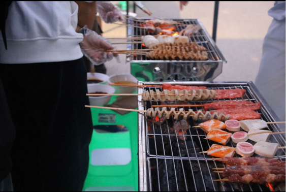 本次活动用香气吸引同学们的到来,用美食留下各位的心,不仅温暖了此夜,更点燃了此夜。此外,现场的工作人员为了满足大家不同口味的需求,特意调制了不同的佐料,现场气氛活跃,尽管夜晚气温下降,也无法抵挡同学们的热情。活动中最大的亮点是教师烧烤,这次烧烤无疑是拉进了老师与同学之间的距离,增进了老师与同学之间的感情。