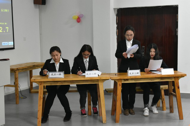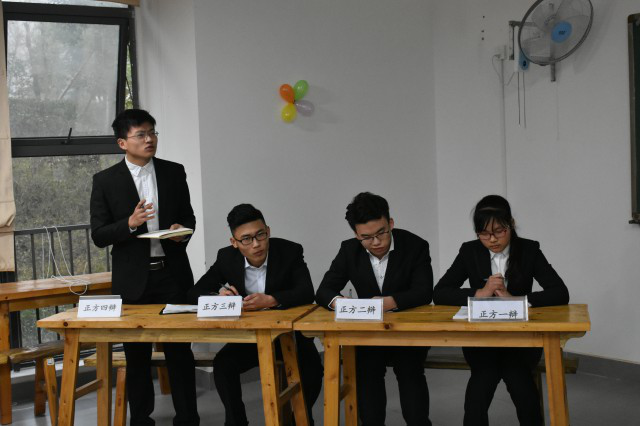 在主持人对本次决赛的规则进行讲解后,由管理工程系学生会学习部带来了情景剧表演,带动现场气氛,并引出了此次辩论决赛论题——超前消费是否利于大学生树立正确的价值观,正反双方就此展开了激烈的较量。双方辩论者主要针对超前消费的定义和消费价值观两个点上针锋相对,不断思考对方的破绽,抓住机会,据理力争。