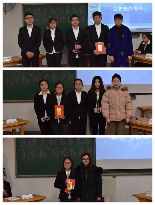 在随后的阶段中,气氛时而紧张时而缓和,正反双方妙语连珠互不相让,有时语惊四座让观众大笑,有时又从容自若娓娓而谈,到了总结阶段双方语速加快,努力将自己的观点阐明,同时不断攻击对方的薄弱之处。动之以情晓之以理,在众多数据和情感的交错中,决赛成绩出炉,本届“迎新杯”辩论赛结束。最终,由正方你们胡说这样不队获得了最佳思辨团队的称号,反方道理我都懂队获得了最佳风采团队的称号,最佳辩手则是由反方二辩获得。