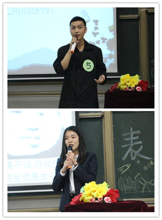 在主持人王玲、余帅气宇轩昂的嘉宾介绍下,更是使活动人气高涨。我们有幸邀请到梁少峰、蒋益、苏容、何燕四位老师作为本次比赛的评委。比赛正式开始,在选手的答辩过程中,有展示自己主任的日常,告诉大家在工作中严谨务实、一丝不苟的工作态度下,也有如表情包一样可爱的一面。也有的展示从咿呀学语到大学中的我们,感叹岁月就像一把杀猪刀,刀刀嚎叫。还有的表情包则表示进入冬眠的我们,起床难,难于上青天。呼吁我们要与时间赛跑等等。无不在展现着表情包在当今生活中的发挥着巨大的作用。