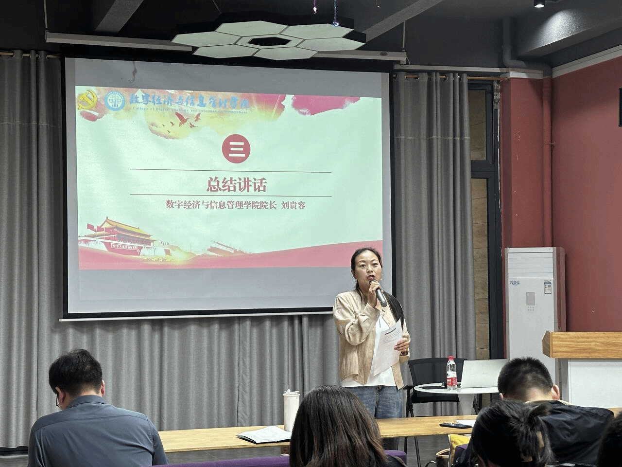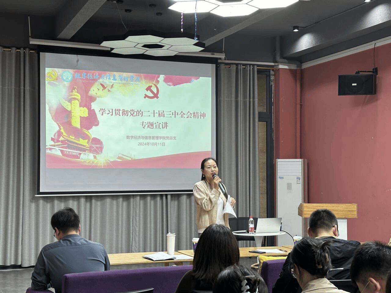 宣讲会上,数字经济与信息管理学院院长刘贵容进行宣讲动员。她指出党的二十届三中全会是在以中国式现代化全面推进强国建设、民族复兴伟业的关键时期召开的一次十分重要的会议,全会《决定》是新时代新征程上推动全面深化改革向广度和深度进军的总动员、总部署,充分体现了以习近平同志为核心的党中央完善和发展中国特色社会主义制度、推进国家治理体系和治理能力现代化的历史主动,以进一步全面深化改革开辟中国式现代化广阔前景的坚强决心,充分释放了改革不停顿、开放不止步的强烈信号。希望全体师生党员认真学习,积极贯彻落实党的二十届三中全会精神。