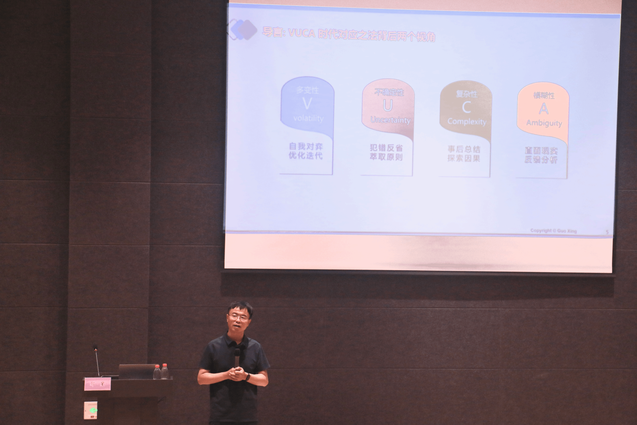 这是一个变化的时代,管理没有固定模式,领导力的答案也绝非一成不变,郭星老师结合自身多年的管理咨询经验,深入精髓地将领导力内涵总结为:决断能力,创新能力,发展培养团队的能力,微光中的坚持能力,果断与魄力,挣扎、承诺与勇气等要素,并总结与分享多位著名企业家领导力观点。紧接着,郭星老师语重心长地鼓励各位同学,对未来想做领导、成为优秀领导要有期许,并朝着它去培养与训练,而领导能力获得提升的前提是独立思考能力和终身学习能力的培养与训练,而其中多读书最为关键,因为读书是穿越时间和空间,开启自己与自己的对话,实现独立思考的最有效的训练方式。