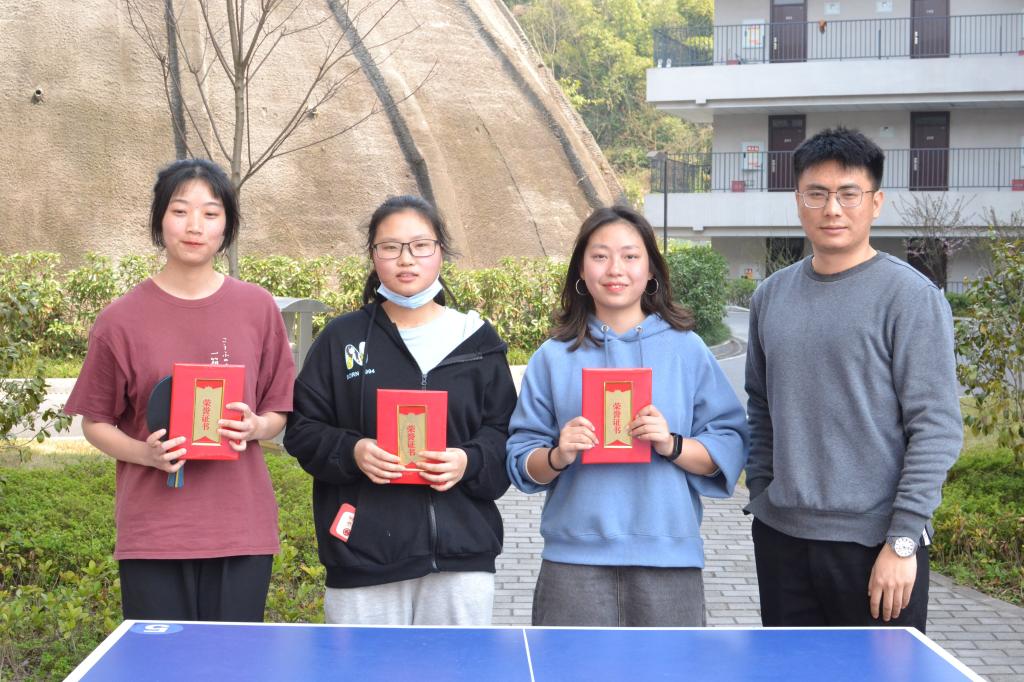 随着冠军的诞生,也意味着首届乒乓球大赛圆满落幕。在同学们的热烈欢呼声中,阳果老师与陈锐老师分别给女生组、男生组的获奖同学颁发荣誉证书,以示鼓励。