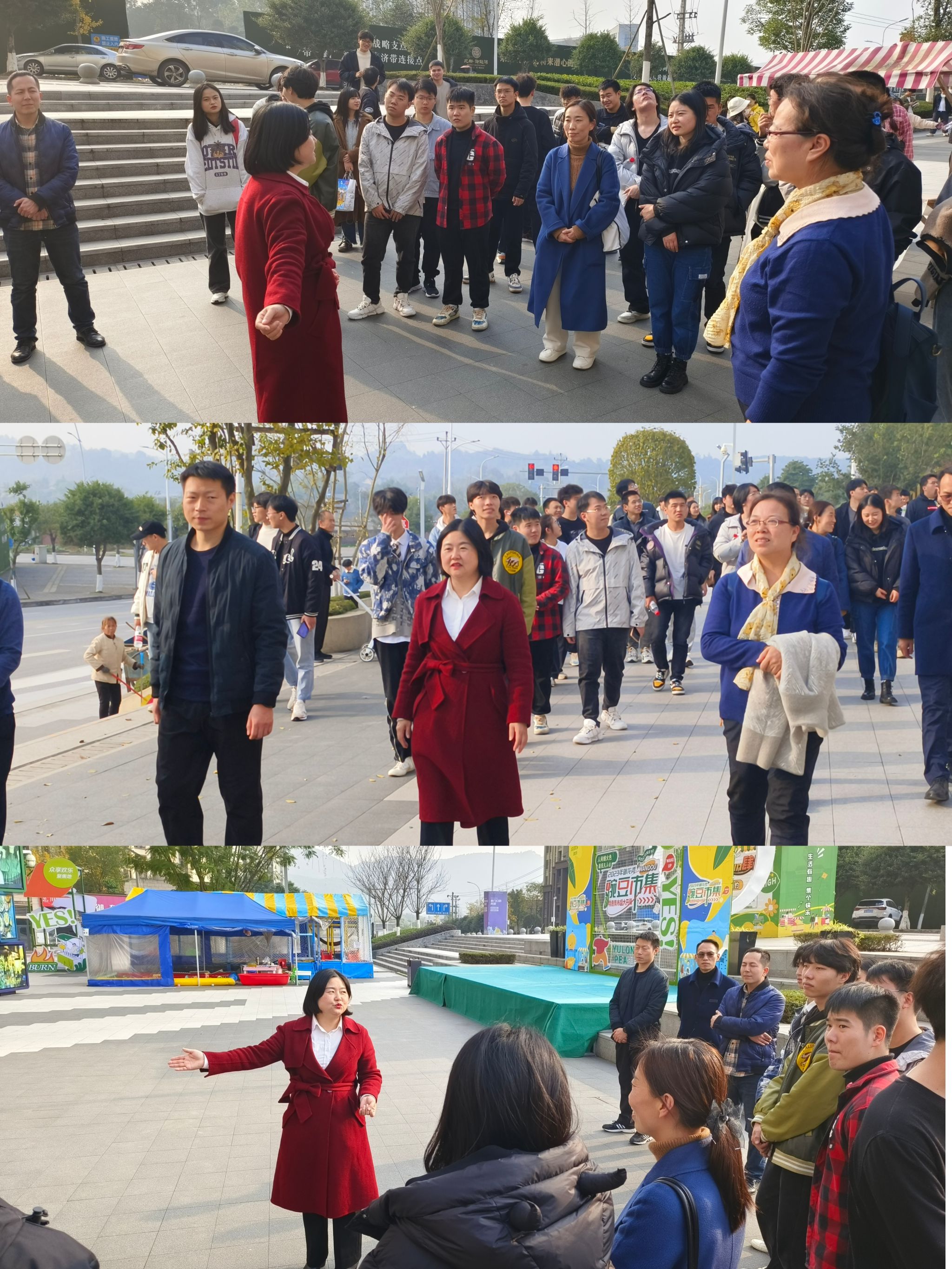 企业工作人员带领同学们对项目进行了实地参观走访,重点介绍了城市风景商业街,重点提到了项目打造的独属于业主的豌豆市集,并热情邀请同学们参与市集的活动,拓展课外实践内容。进入社区,专家们向同学们介绍到,楼栋建筑费用、后期养护方法、不同楼栋的差异等等相关知识,企业专家们的专业知识与认真负责的态度让同学们大为赞叹并表示也要像专家们学习,努力提升自身能力早日为重庆的建设献出属于自己的力量。