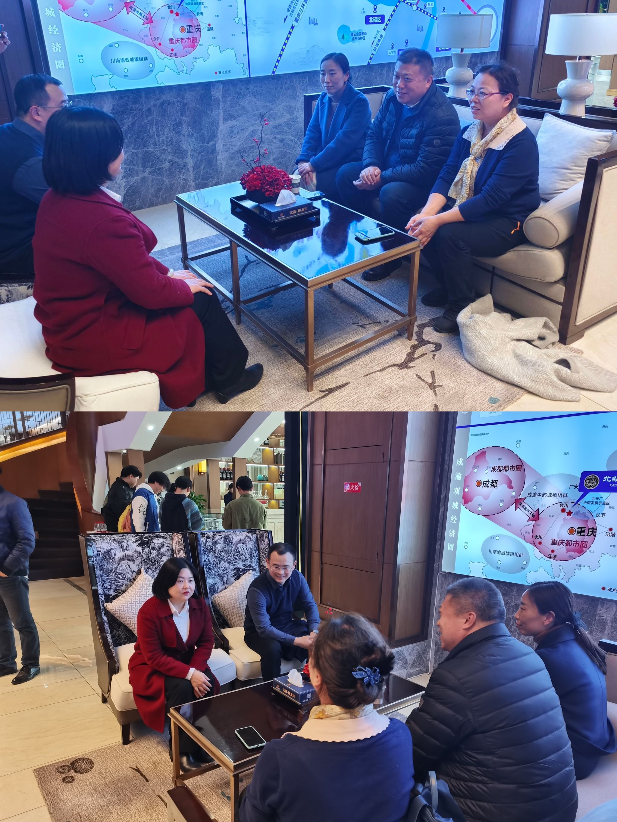 学院领导跟项目营销中心负责人员就项目情况和校企合作意向进行了座谈。潘显兵院长表示有幸来到项目进行参观建成项目的运行情况,通过实地观察和讲解,更加深刻地认识到建设项目对于社会发展和经济建设的重要性,将继续开展类似的认识实习活动,为学生提供更多实践机会和平台,帮助他们更好地适应企业需求,为未来的职业发展打下坚实的基础。