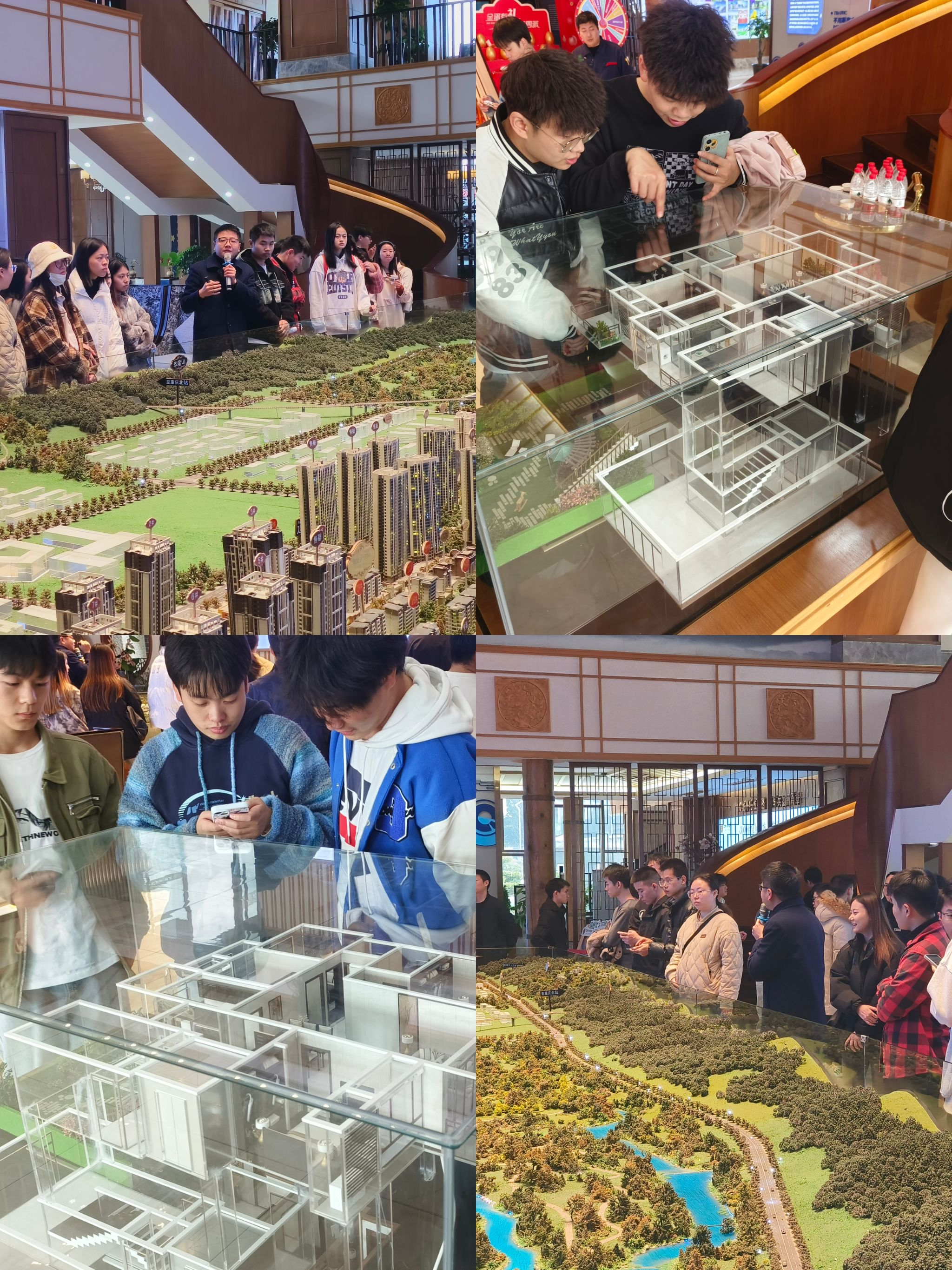 师生代表来到御龙湾售楼中心参观,讲解员首先介绍了北新路桥集团的发展历程、发展战略、以及辉煌成果。接着介绍了目前城市建设的特色和发展前景。宜居生活新主张、不用距离丈量远近,以时间突破空间、不被城市喧嚣所扰,伴原生态天工而居、不远离城市繁盛,富集优质生活资源、以及靠近信息安全产业园区等独特优势成就了城市现状。