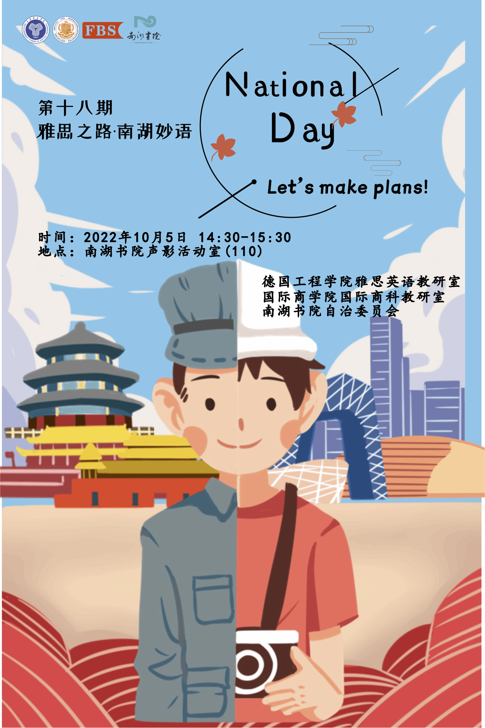 【假期篇】第18期雅思之路·南湖妙语——用心筹划 欢度国庆,老师带领大家做“最难忘的一次假期经历”分享,并制定假期计划。外教和同学们谈到假期时在医院度过的时间,分享对生命的感触。