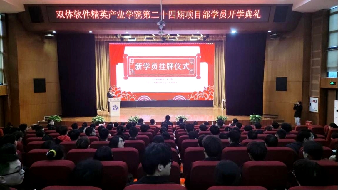 2月20日下午,双体软件精英产业学院第二十四期项目部开学典礼在下里巴人剧场顺利举行。重庆移通学院党委副书记、副校长周伟老师,校长助理、双体软件精英产业学院院长陈仲华老师,双体软件精英产业学院副院长张炼老师出席了本次开学典礼。开学典礼结束后,陈仲华院长开启了院长赋能计划环节,同时,也拉开了双体软件精英产业学院第二十四期项目部培训周的序幕。