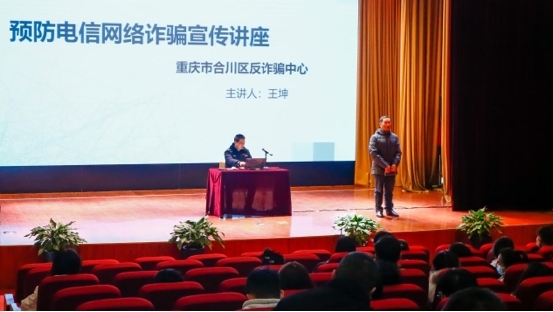 为增强全民电信网络反诈骗意识,切实提升我校师生对电信网络诈骗犯罪的防范能力,2月23日下午16时,由保卫处、学生处联合举办的预防电信网络诈骗宣传讲座在下里巴人剧场开展,合川区公安局反诈骗中心民警王坤为同学们主讲,进一步增强了我校师生防范电信网络的诈骗犯罪的意识和能力,筑牢了防范打击电信、网络诈骗违法犯罪的坚固屏障。