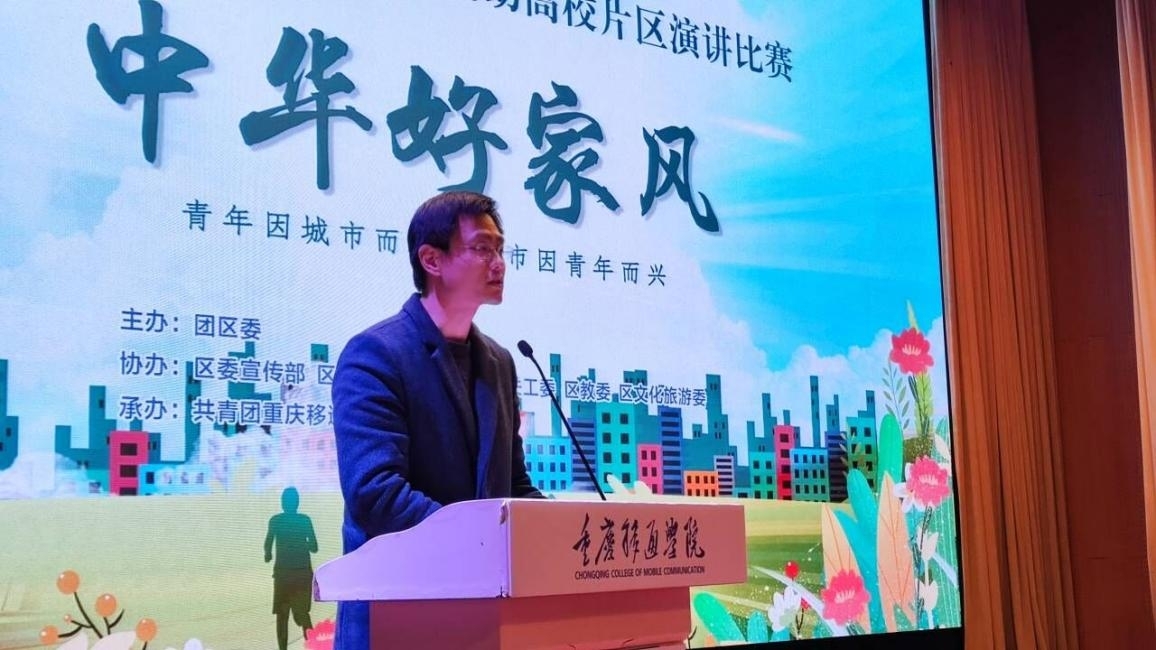 为深入学习宣传贯彻党的二十大精神,全面贯彻落实习近平总书记对关心下一代工作的重要指示,2月27日下午,合川区“中华魂”(中华好家风)读书活动高校片区演讲比赛在我校下里巴人剧场顺利举行,这也是下里巴人剧场本学期首次对外承办重要赛事,我校党委副书记、副校长周伟对活动进行开场致辞,同时对莅临我校的领导及选手表示热烈的欢迎。