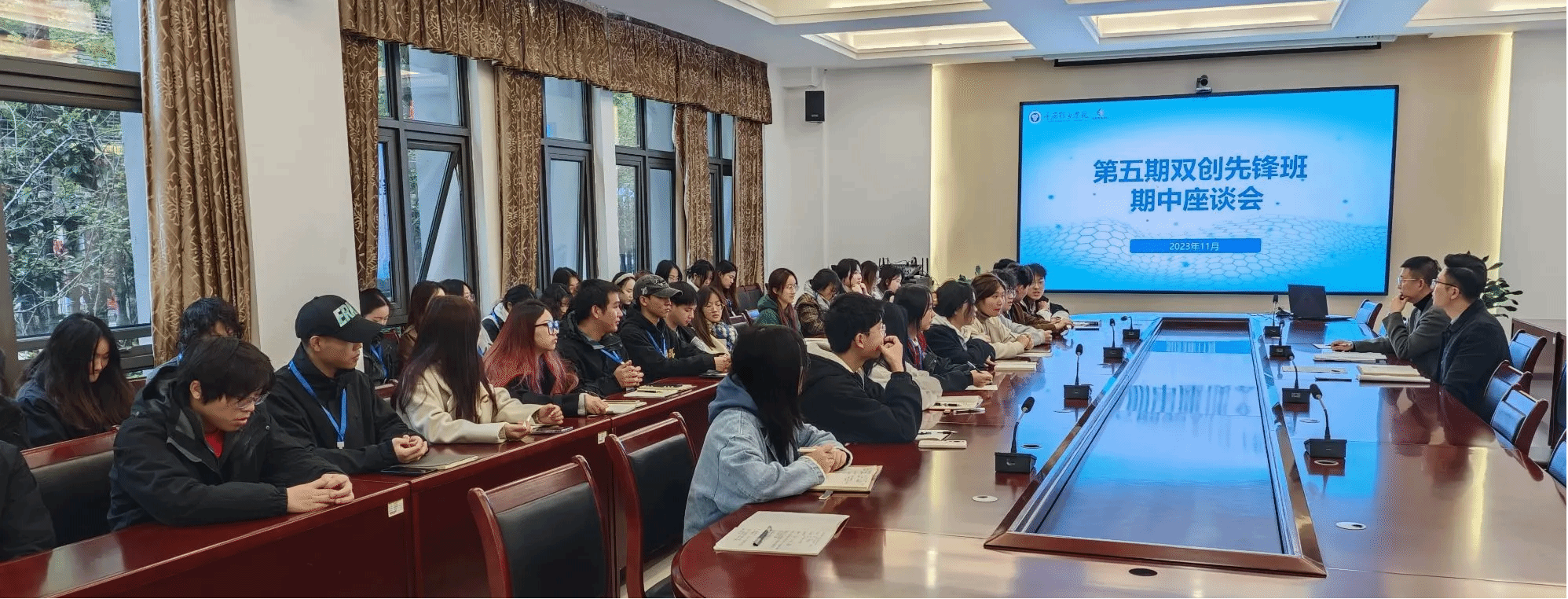 为进一步提升双创先锋班的教学能力,充分了解双创先锋班学员的需求,切实提高管理效能。2023年11月14日,第五期双创先锋班在行政楼107会议室召开了本学期期中座谈会。本次参加会议的有就业创业指导与服务中心副主任、创新创业学院副院长佘桂隆,就业创业指导与服务中心杨杰老师,双创导师王青、王颖珠以及第五期双创先锋班全体学生。