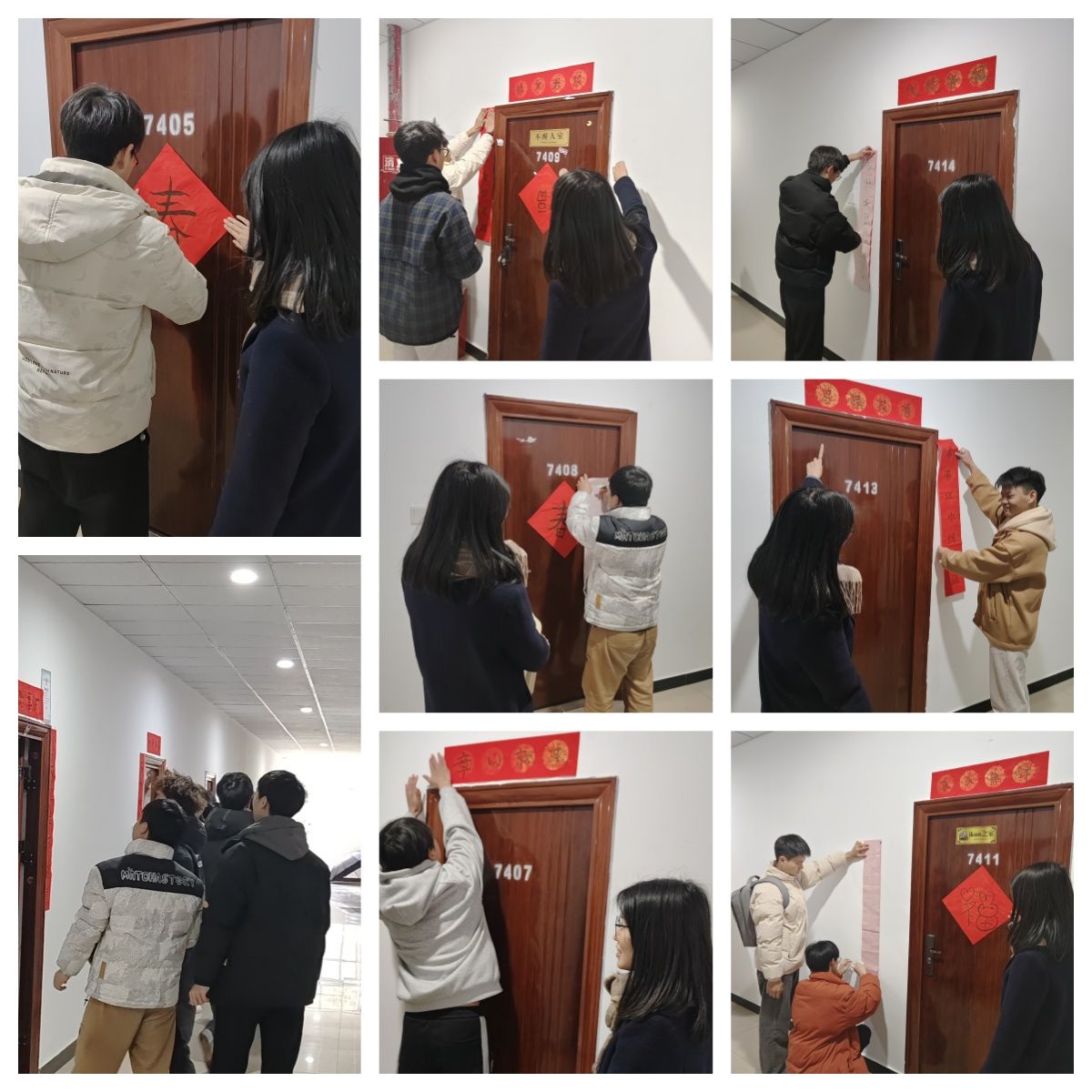 贴对联是中国人对美好一年向往的传统习俗,是同学们对新学期加油打气的最佳仪式感。在贴对联的现场,来来往往的同学们纷纷驻足围观和夸赞。“室友手写的对联更有味道,进出寝室天天都能看到。喜庆的红色续写着真情,寓意着今年同学们都能龙腾虎跃。看着这一副副鼓舞人心的对联,即使心情不美好,也会提醒我们日子不如意,别气馁、别消沉,勇敢地去面对,时间自会给你想要的答案。”2022级车辆工程1班班长朱贵萍笑着说道。