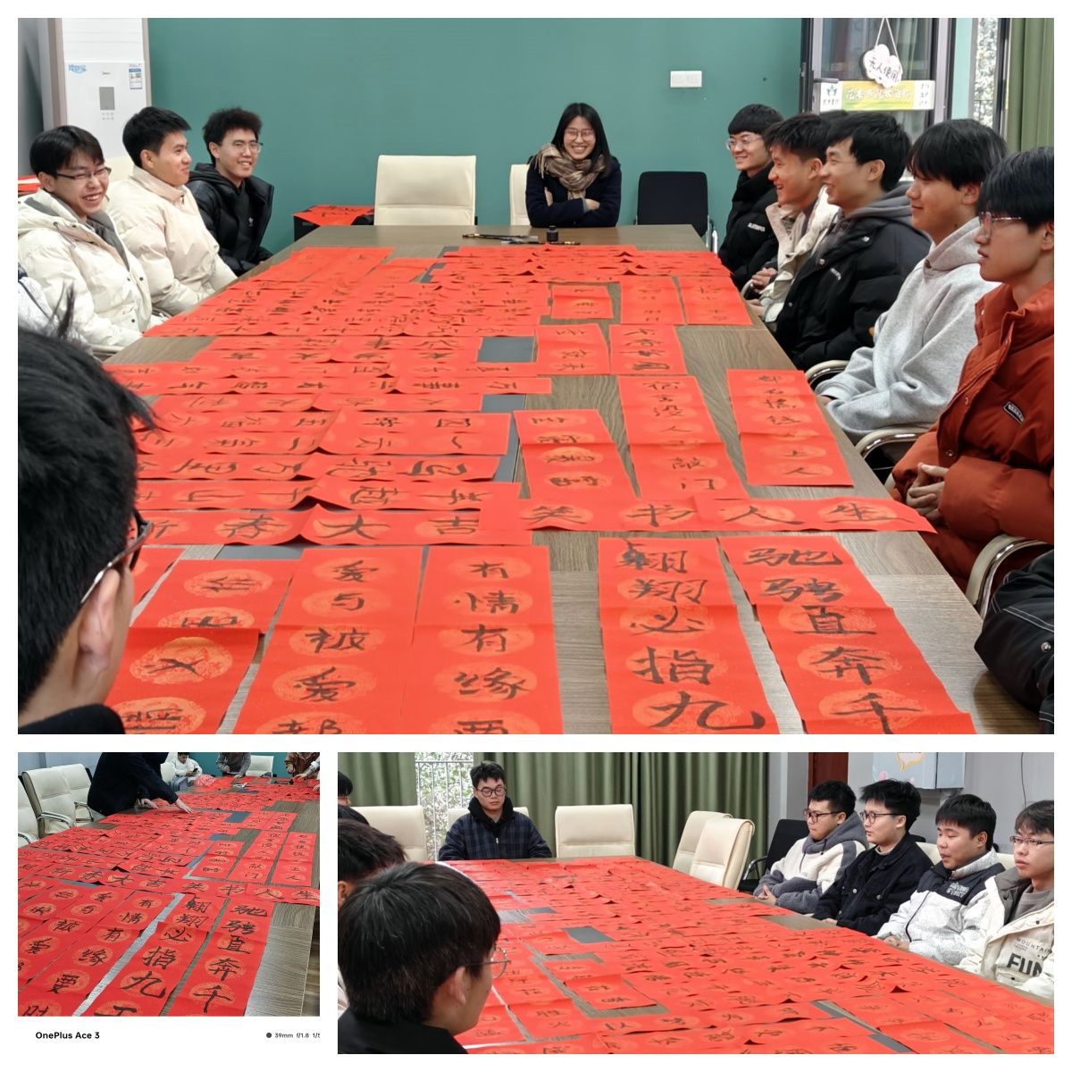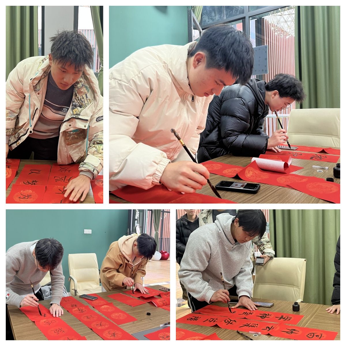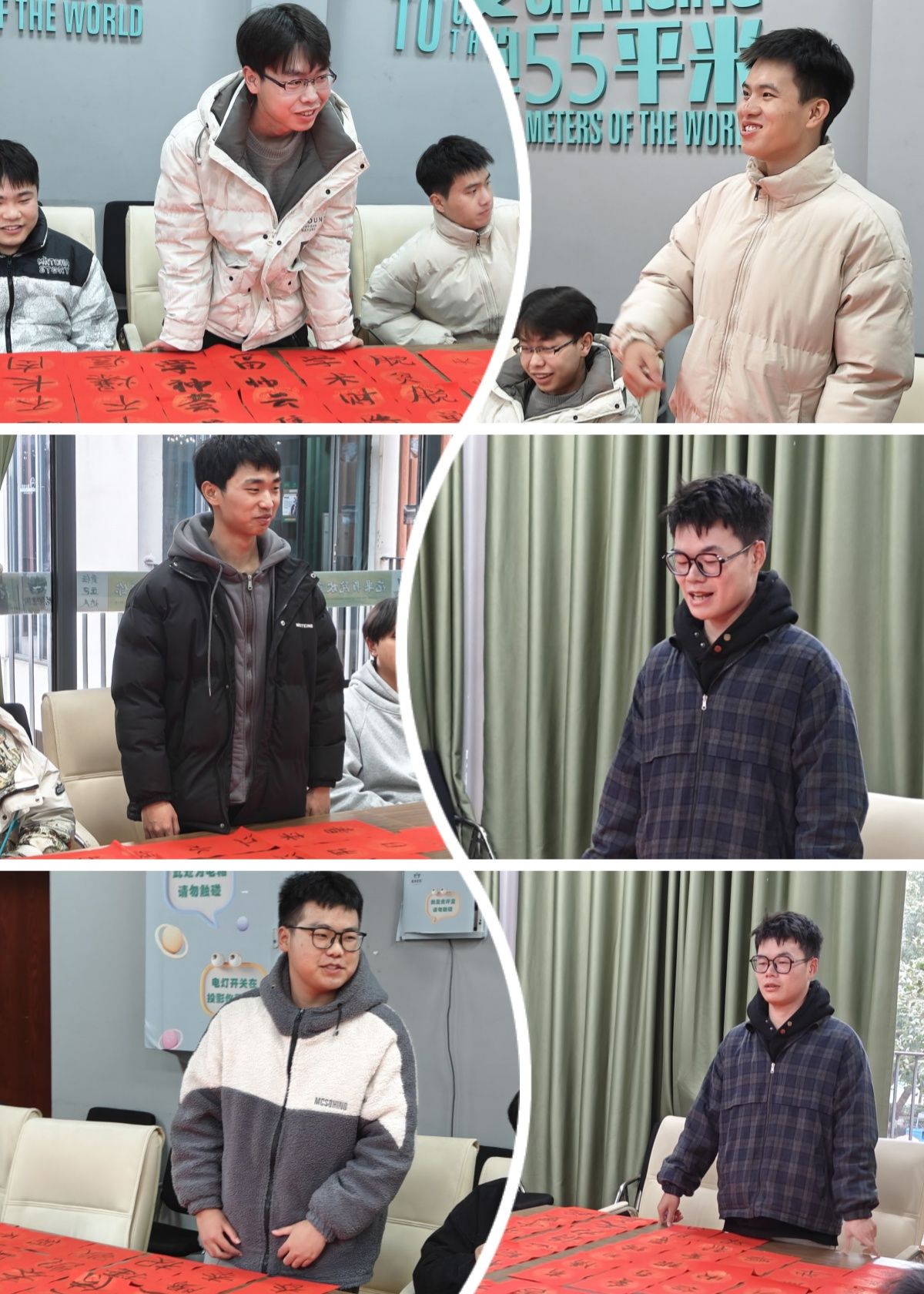 书香辞旧岁,春风易新桃。“毛笔字很难写好,但只要你敢写,写完后很有成就感,对新学期也有了更深的盼望。”学院心理版块负责老师谭英姿说道。红纸铺开、挥毫书写、墨香飘逸,在花果书院会议室,同学们跃跃欲试,纷纷挥毫泼墨,把对新学期美好的祝愿写进对联里。阵阵墨香中,欢声笑语不断。“一帆风顺年年好,万事如意步步高”、“新学期,永不挂科”、“以梦为马,不负韶华”......这些美好的愿景载满对新学期的祝福,是治愈心灵的良药。通过书写对联的方式,引导同学们更好地认知、感受、体验自己的情绪,让参与者在互动过程中逐渐释放自己的压力。活动现场同学们畅所欲言,现场的气氛更是其乐融融,欢快无比。