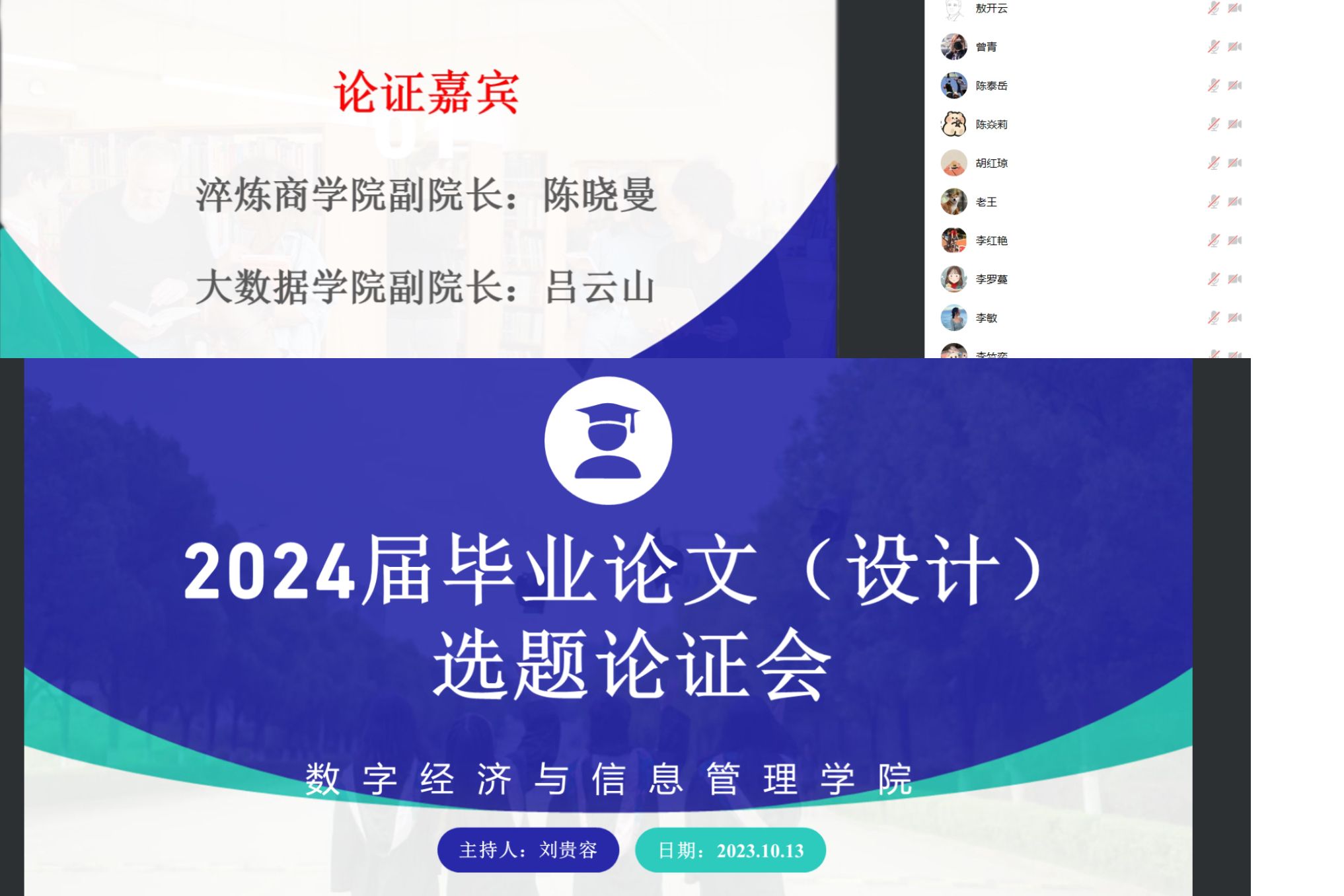 为切实做好2024届毕业生毕业论文(设计)工作,加强工作规范,提升毕业论文质量,数字经济与信息管理学院开展了线上线下结合的选题培训会和选题论证会。