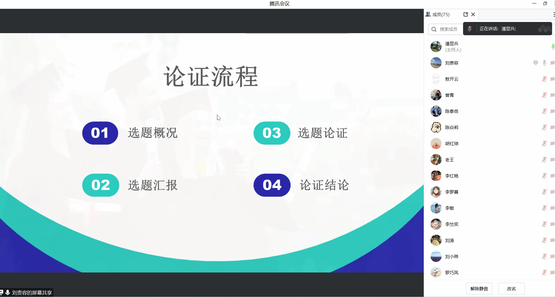 各次论文选题培训和工作安排后,指导老师们完成了共1500多个论文选题上报工作,经学院初审后,于2023年10月13日开展了选题论证会。本次选题论证会邀请了淬炼商学院教学副院长陈晓曼、大数据学院教学副院长吕云山,以及数信学院全体论文指导老师参会,会议由教学副院长刘贵容主持。
