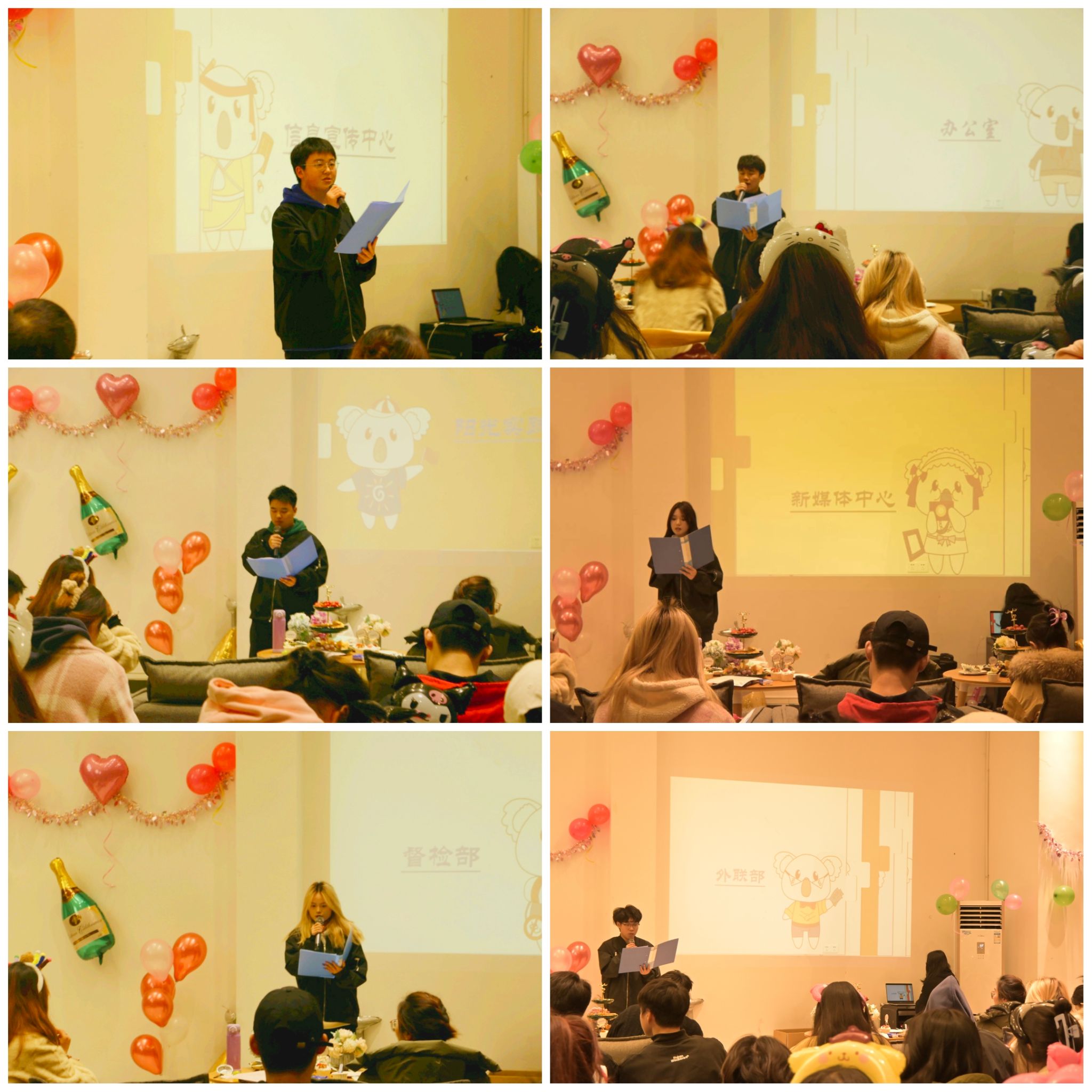 仪式的最后,宿管会全体成员一起参与了“逛三园”、“嗑瓜子”和“你画我猜”三个游戏,以积分形式计算成绩。在游戏环节结束时,督检部的表现十分优异,所获分数碾压了其他团队,凭借出色的表现摘得了游戏环节的总冠军。