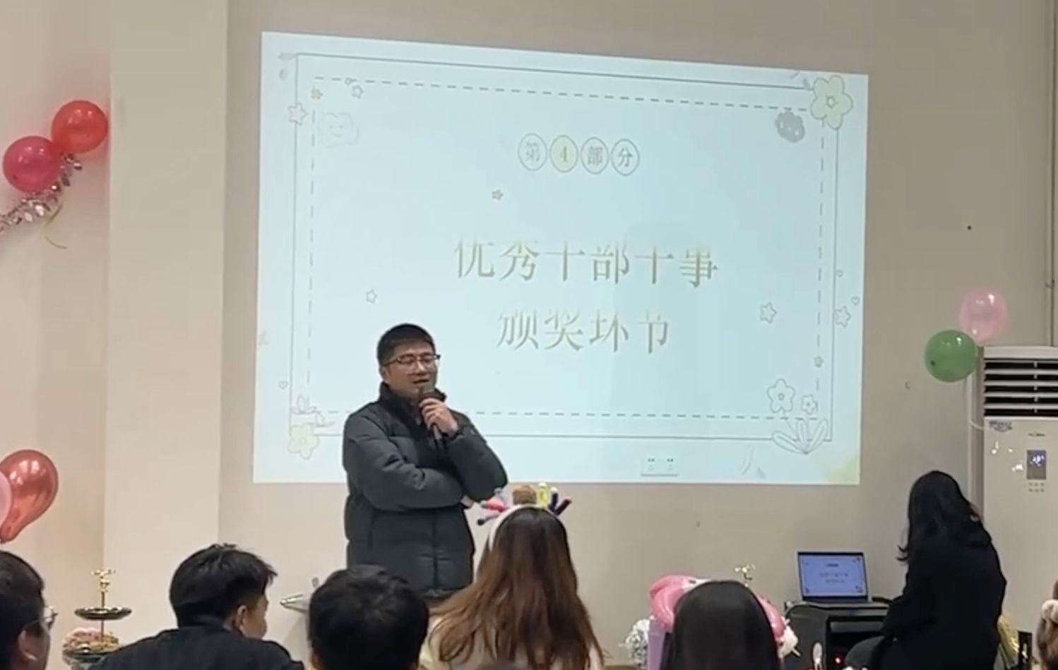 在颁奖仪式上,张旭老师再次登台为优秀成员颁奖。他对获奖同学的工作成果表示高度认可,并希望同学们能够珍惜荣誉,再接再厉。这是对他们之前工作努力的肯定,也是对他们未来发展的一种鼓励。