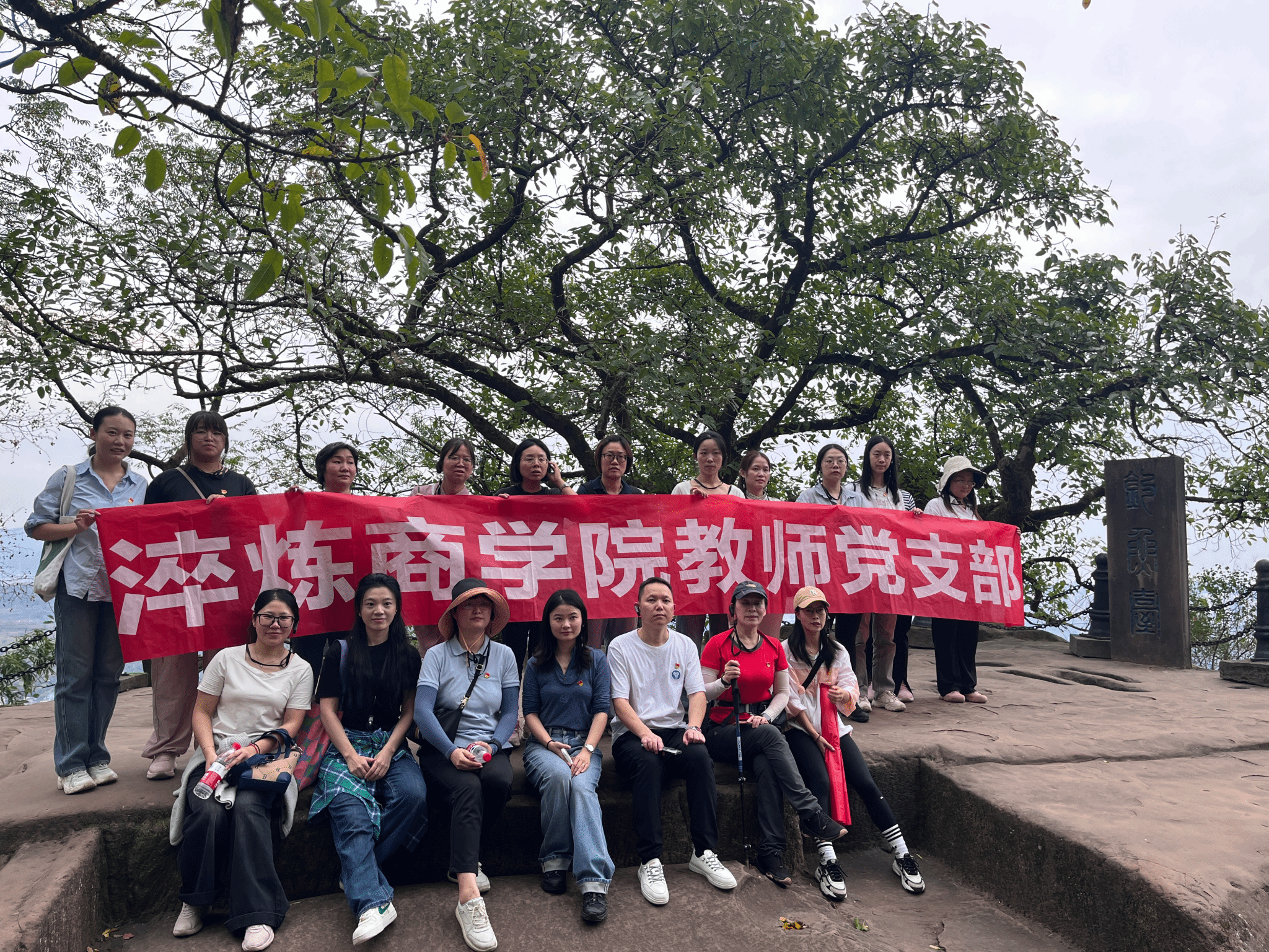随后,全体党员教师踏上了钓鱼城古道,沿着蜿蜒的山路攀登古战场遗址。在攀登过程中,大家重温了这片英雄之地的辉煌历史,深刻体会到钓鱼城的将士们不屈的意志和英勇的斗争精神,这种亲身体验的形式更能激发党员教师们的爱国主义情怀和奋斗精神。经过一路攀登,全体党员最终到达顶峰,俯瞰钓鱼城全景。站在历史的高度上回顾过往,大家体会到了肩负历史使命的责任感。在这次活动中,党员教师们不仅磨炼了身体的意志,也在汗水与坚持中增进了团队的凝聚力和合作精神。