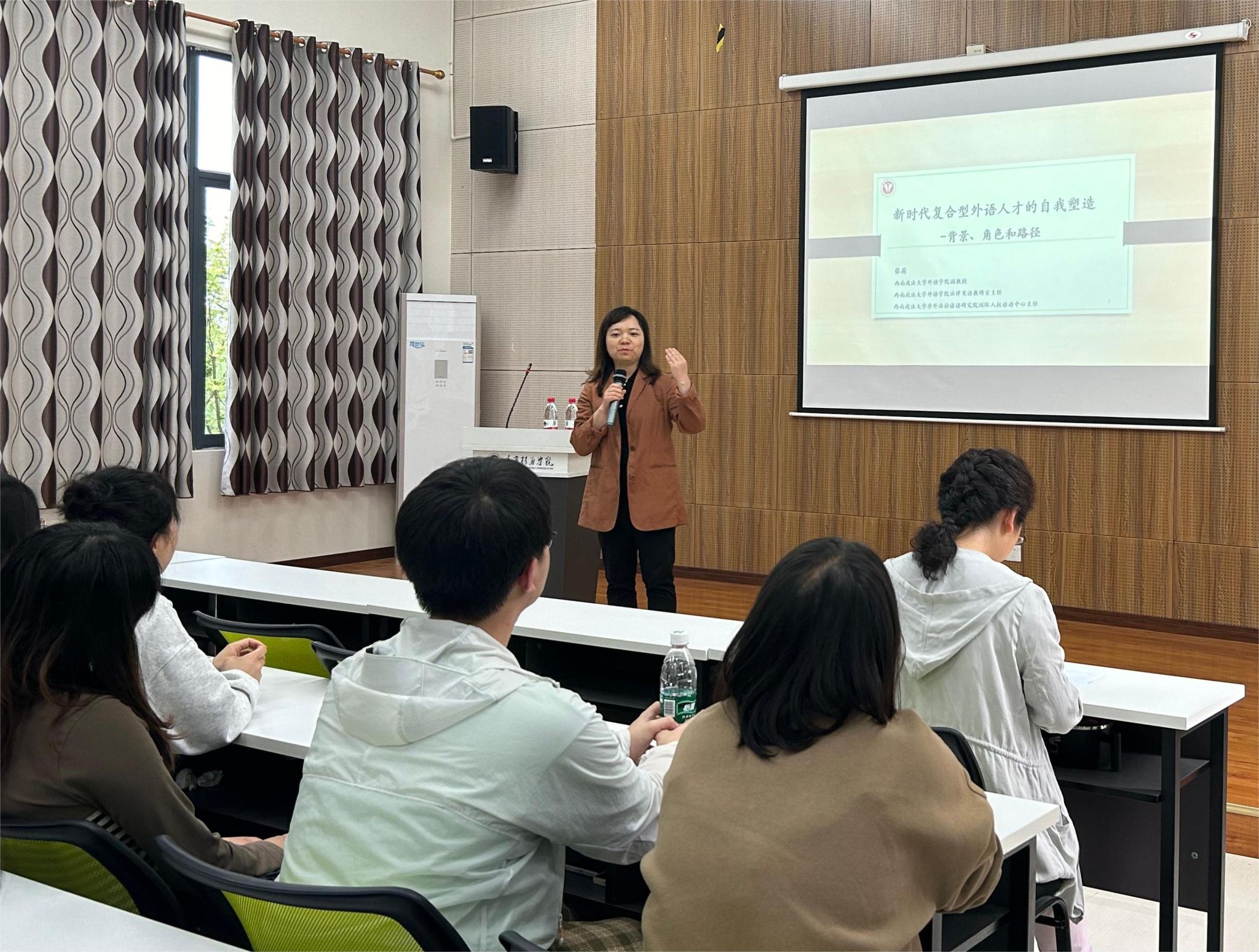 为了培养“精外语、晓商科、知信息”,特色鲜明的外语复合应用型高级专门人才,4月16日,我院邀请到了西南政法大学外语学院副教授、法律英语教研室主任、涉外法治话语研究院国际人权话语中心主任张莉老师在天渠报告厅开展了题为“新时代复合型外语人才的自我塑造-背景、角色和路径”的讲座。讲座由学院副院长罗琳主持,学院60余名学生参加。