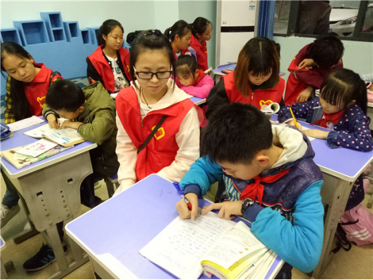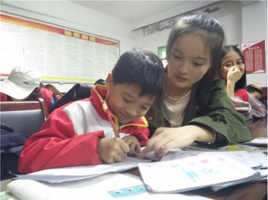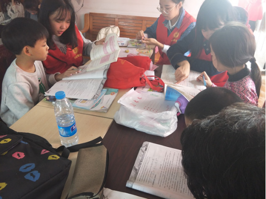 小孩子们看到小e就像看到了熟悉的亲人,眼里尽是满满的亲切。小e们更是激动不已,接过小朋友们的书包,询问家庭作业,然后带着做作业,瞬间转化为学习小老师,耐心的教小朋友写作业,温情的帮他们读课文,抛开一切,那一刻仿佛回到童年,小小的屋子弥漫着爱的味道。志愿服务源于心,奉献爱心始于行。小e们的一言一行都是以小朋友为中心,用自己微薄的力量去帮助每一个需要帮助的人。