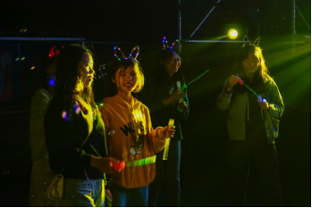各个乐队绽放精彩的同时,29日晚,智能工程学院与外国语言文学系主办,华韵汉服协会和DIY手工协会协办的以“浪漫”为主题的音乐节外围活动——“遇见浪漫”假面舞会在行者公园五人制足球场顺利举行。
