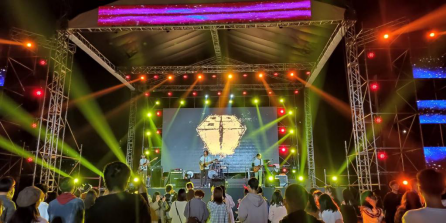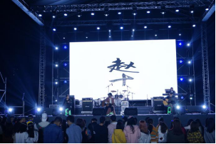 在行者公园最后登台的是摩羯乐队,他们没有过多的语言,凌厉的风格下,将音乐节主题“释放荷尔蒙”进行到底,在《私人印记》《鸦语》《认真》《绚烂》四首歌曲接连轰炸下,嗨起来的音乐舞台和嗨起来的移通师生相映成辉。