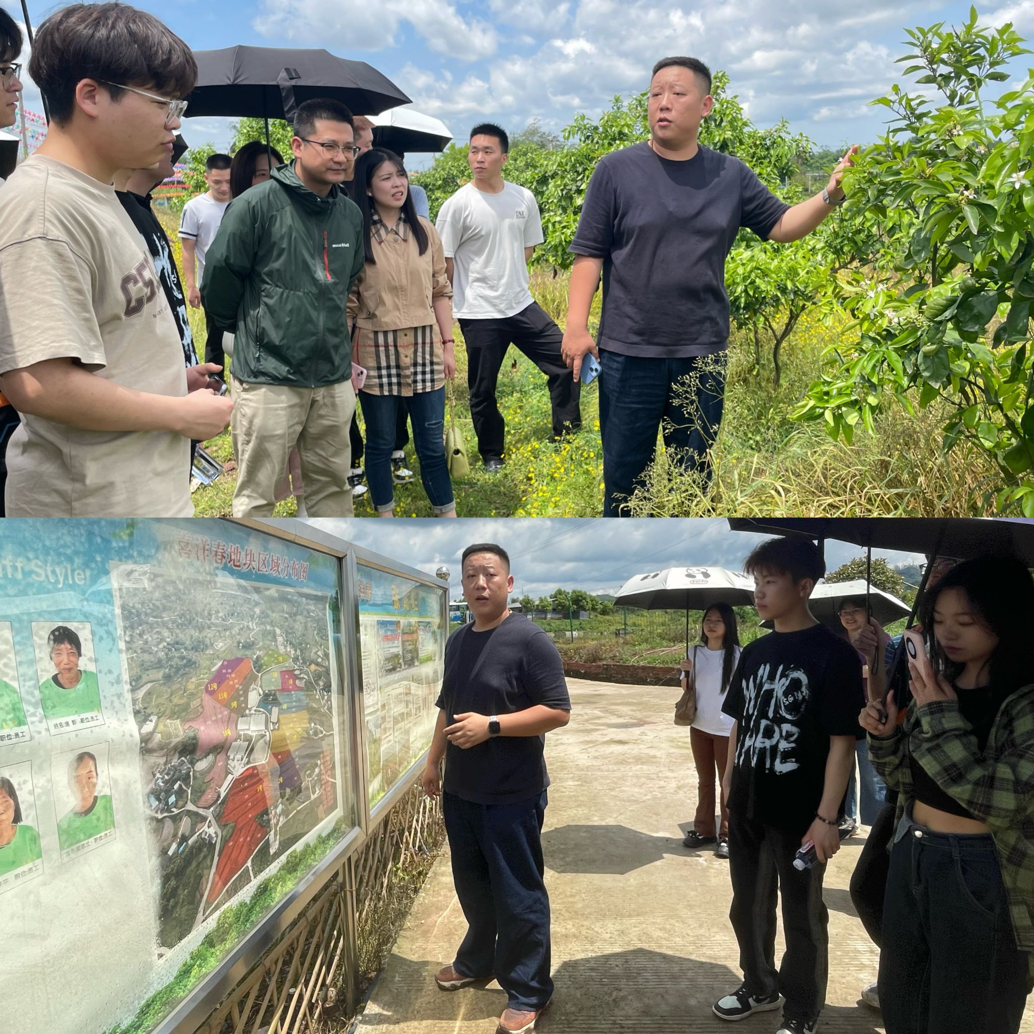随后,在龙全副总的带领下,开展了一堂“行走的思政课”,师生们进入果园实地考察,切身实地了解了大雅柑橘果苗的种植方式和生长习性。龙全副总深入浅出地向师生们讲解了一棵果苗需要经过施肥、打药、修枝、梳花等多道工序,需要工人+机械同步发力,才能有成果的产出;他还谈到当前,喜洋春生态农业坚持“猪-沼-橘”的循环农业生态链,拒绝滥用农药化肥,作为重庆市机械化柑橘果园示范基地,使每一颗果子都经过了严格的绿色食品认证。这种新型生态农场模式为当地的农业发展带来了积极的影响,在国家大力强调抓好“三农”工作的大环境下,喜洋春生态农业一直在乡村振兴、农民增收和农业现代化的道路上不懈奋斗。龙全副总更是结合自身离开城市扎根农村创业的经历,鼓励学生们要俯下身来了解时代和社会、到农村来实践锻炼、用勤劳的双手和智慧的大脑克服困难,那么未来一定大有可为。当日下午阳光明媚,学生们走出教室,来到全新“课堂”,了解了专业以外的新知识,认识了校园以外的新农业,进一步体悟到了乡村振兴不仅要靠技术、还要靠信仰、更要靠坚持。
